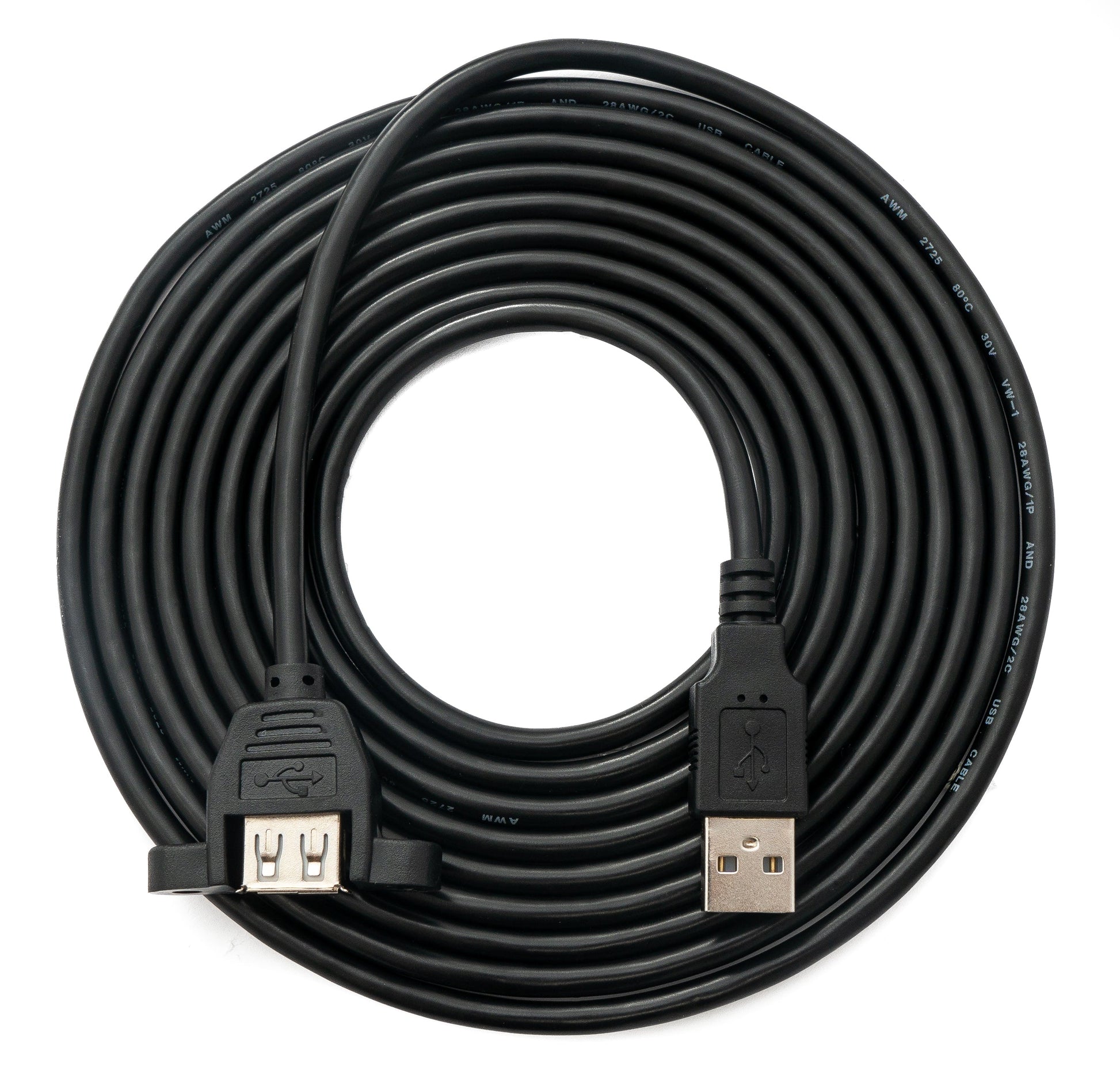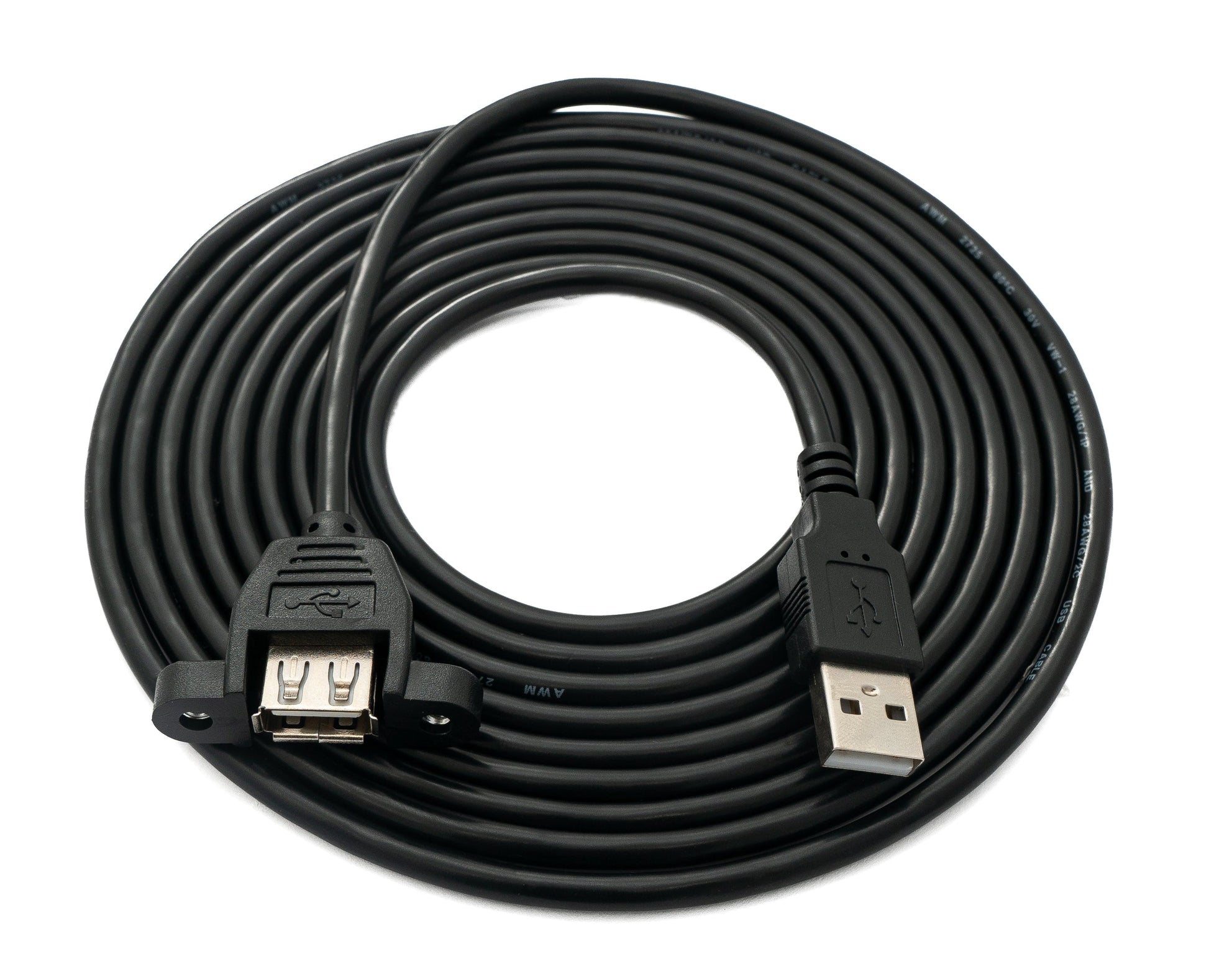 SYSTEM-S USB 2.0 snúra, 3 m, karlkyns í kvenkyns, skrúfuð, svört