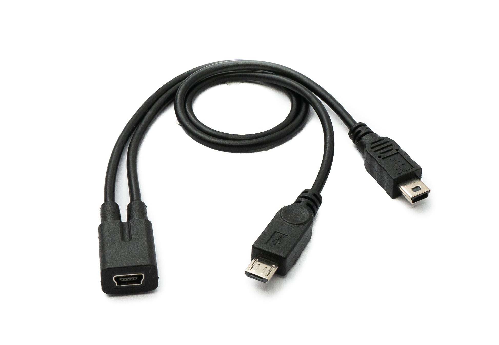 SYSTEM-S USB 2.0 Y snúra 30 cm Mini B kvenkyns í karlkyns + Micro B karlkyns millistykki
