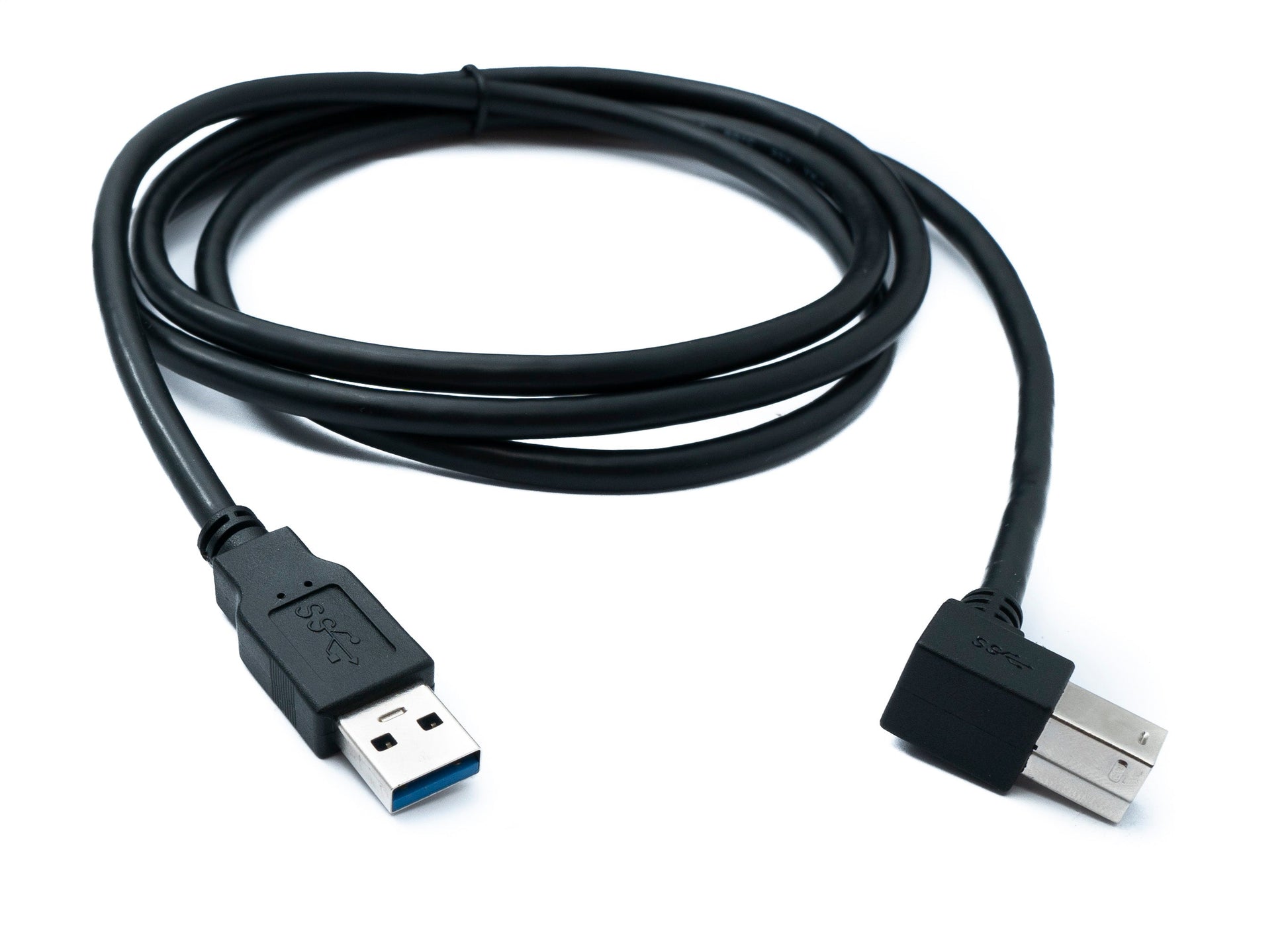 SYSTEM-S USB 3.0 snúra 150 cm karlkyns B í karlkyns A tengi, vinklaður vinstri hornréttur, 5 Gbit/s 100W, svart