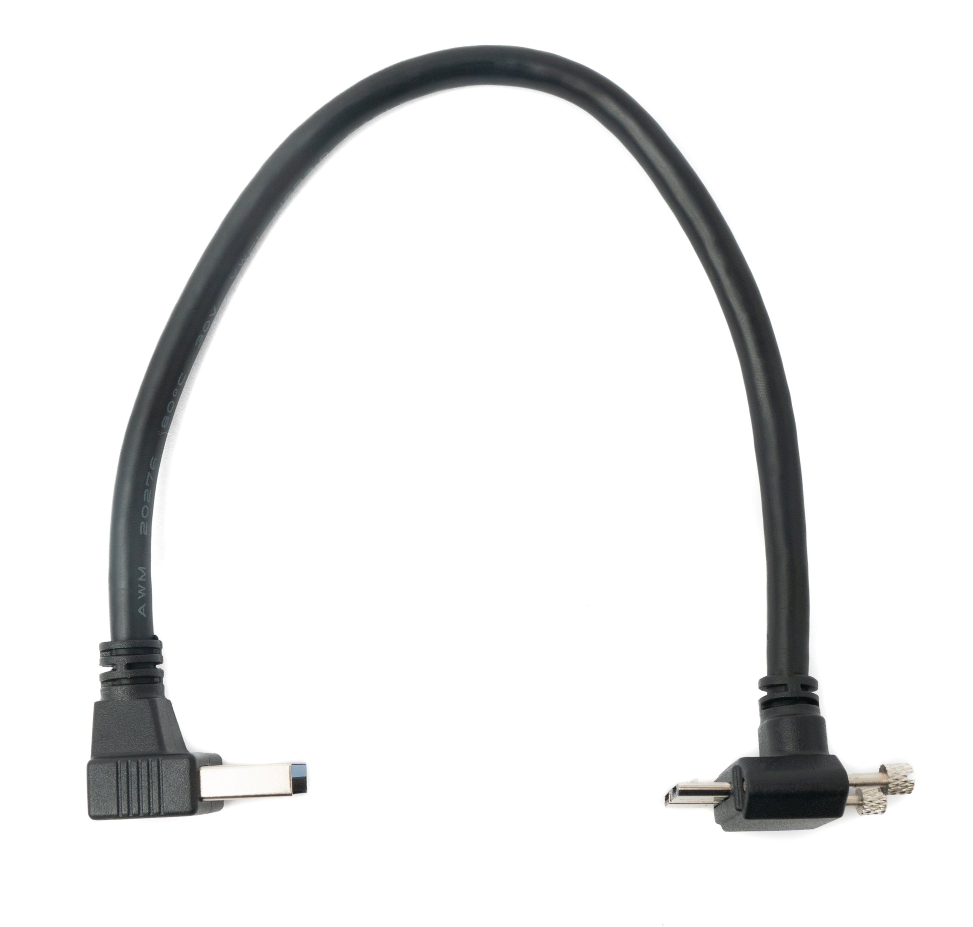 Anschlussarten: Beide Anschlüsse des Kabels sind gewinkelt (Down-Angled), was die Flexibilität und Anpassungsfähigkeit in verschiedenen Situationen verbessert. Der Micro-B-Stecker ist außerdem anschraubbar, um eine sichere Verbindung zu gewährleisten.