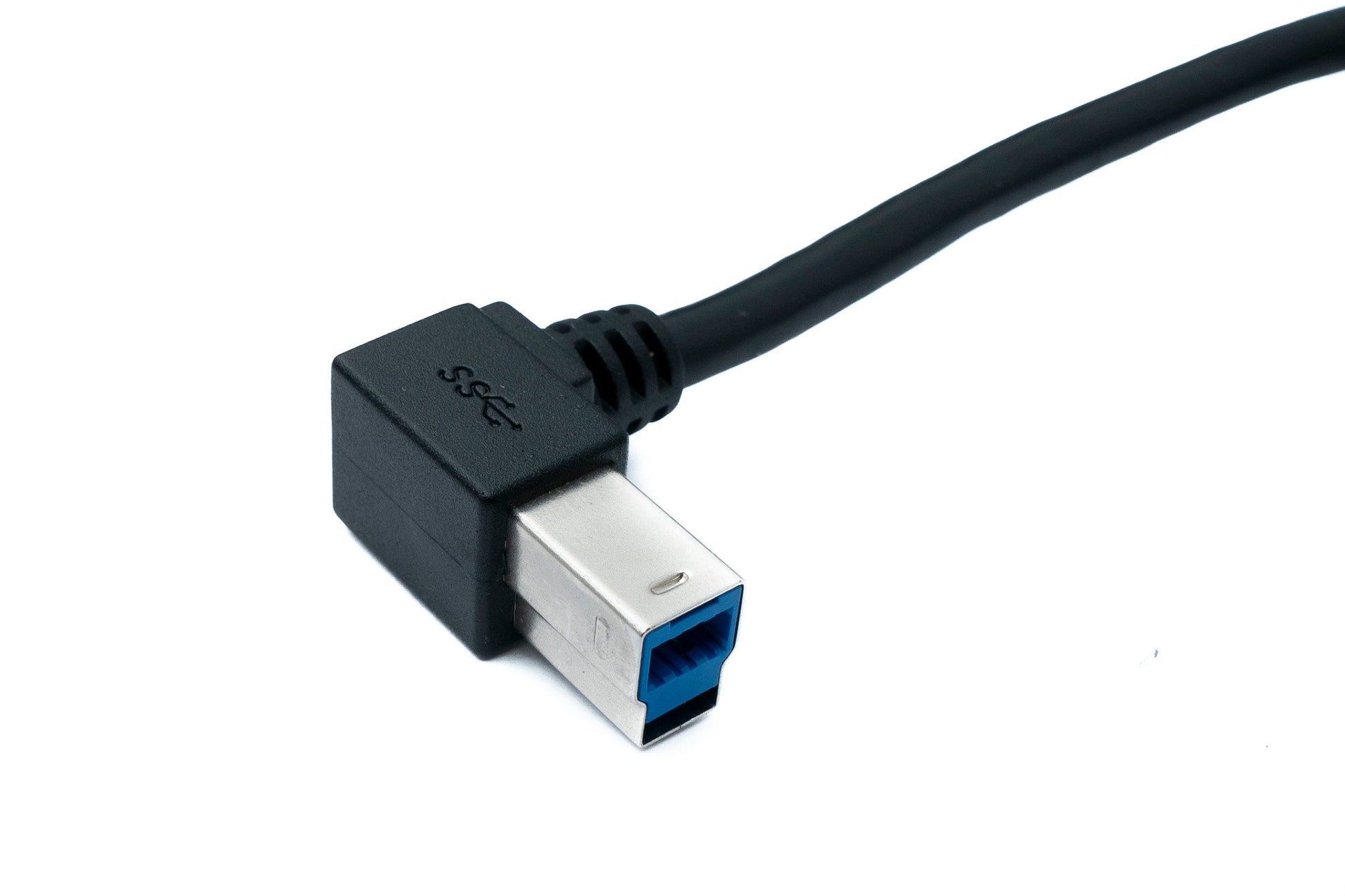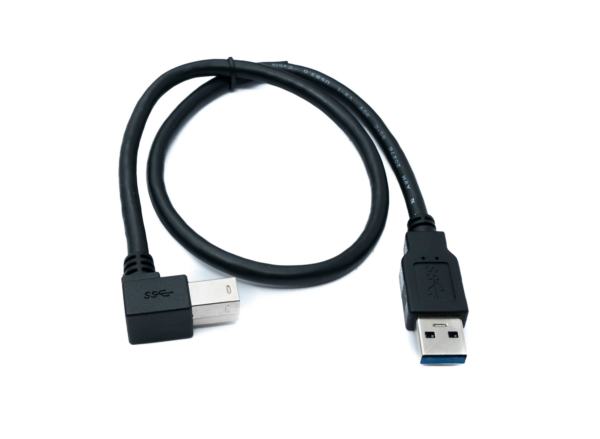 SYSTEM-S USB 3.0 snúra 50 cm af gerðinni B karlkyns í A karlkyns vinklaður vinstri hornréttur 5 Gbit/s 100W í svörtu