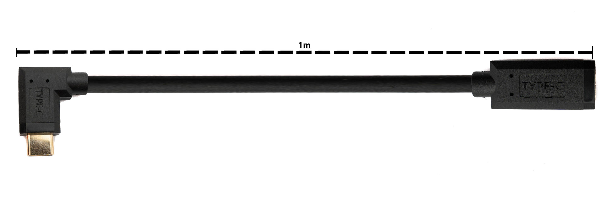 SYSTEM-S USB 3.1 Gen 2 snúra 100 cm Tegund C karlkyns í kvenkyns vinklaður í svörtu