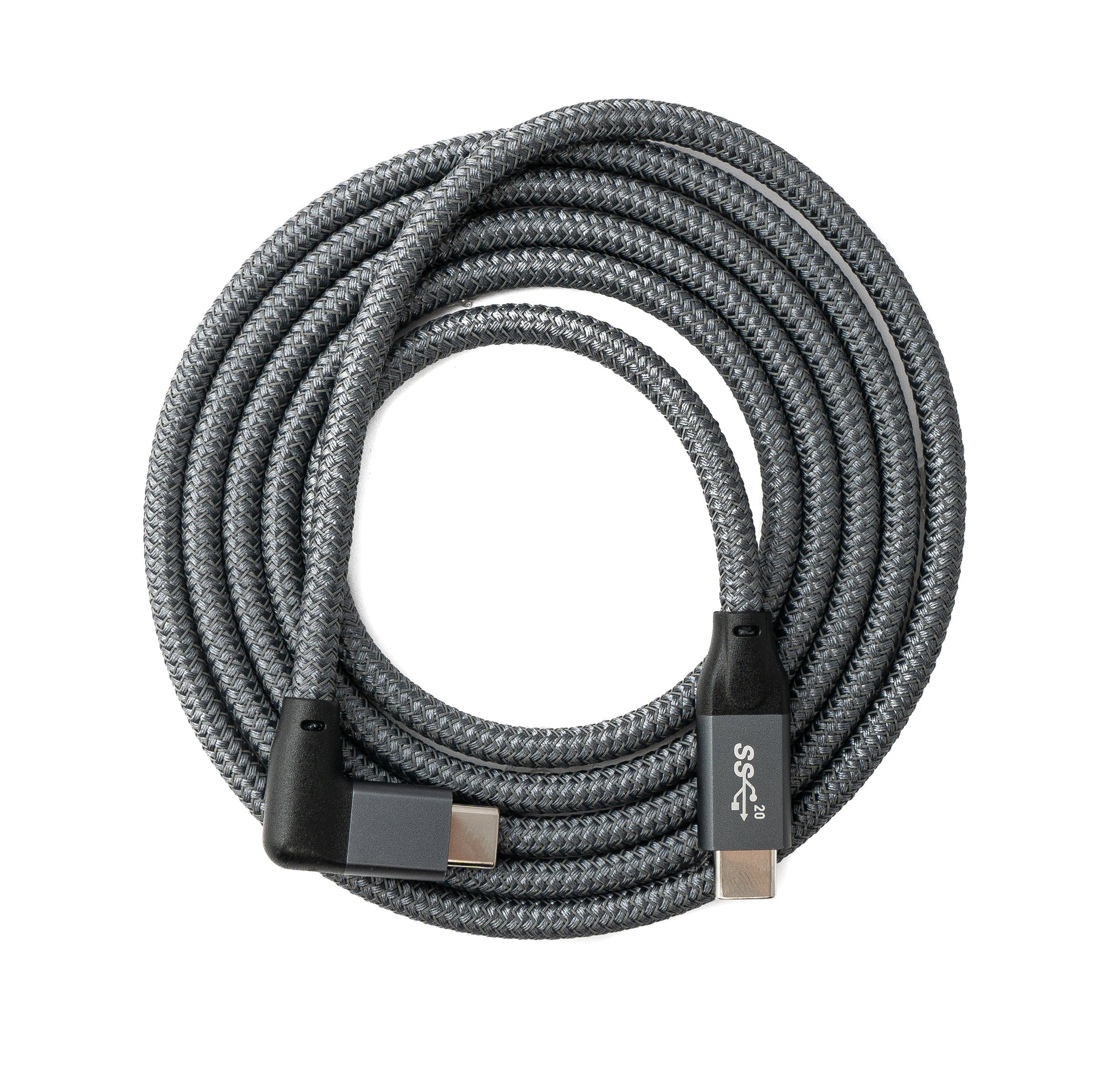 SYSTEM-S USB 3.1 Gen 2 Kabel 150 cm Typ C Stecker zu Stecker Winkel geflochten in Grau