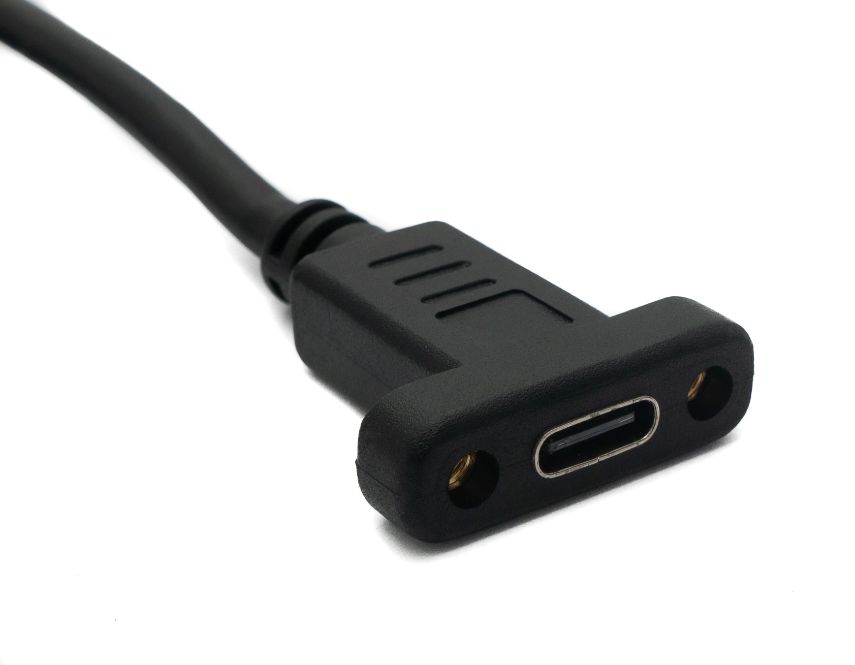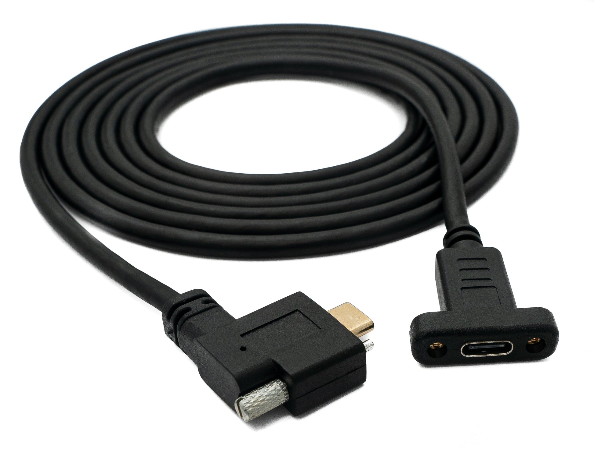 SYSTEM-S USB 3.1 snúra 2 m Type C karlkyns í kvenkyns skrúfuhornssnúra í svörtu