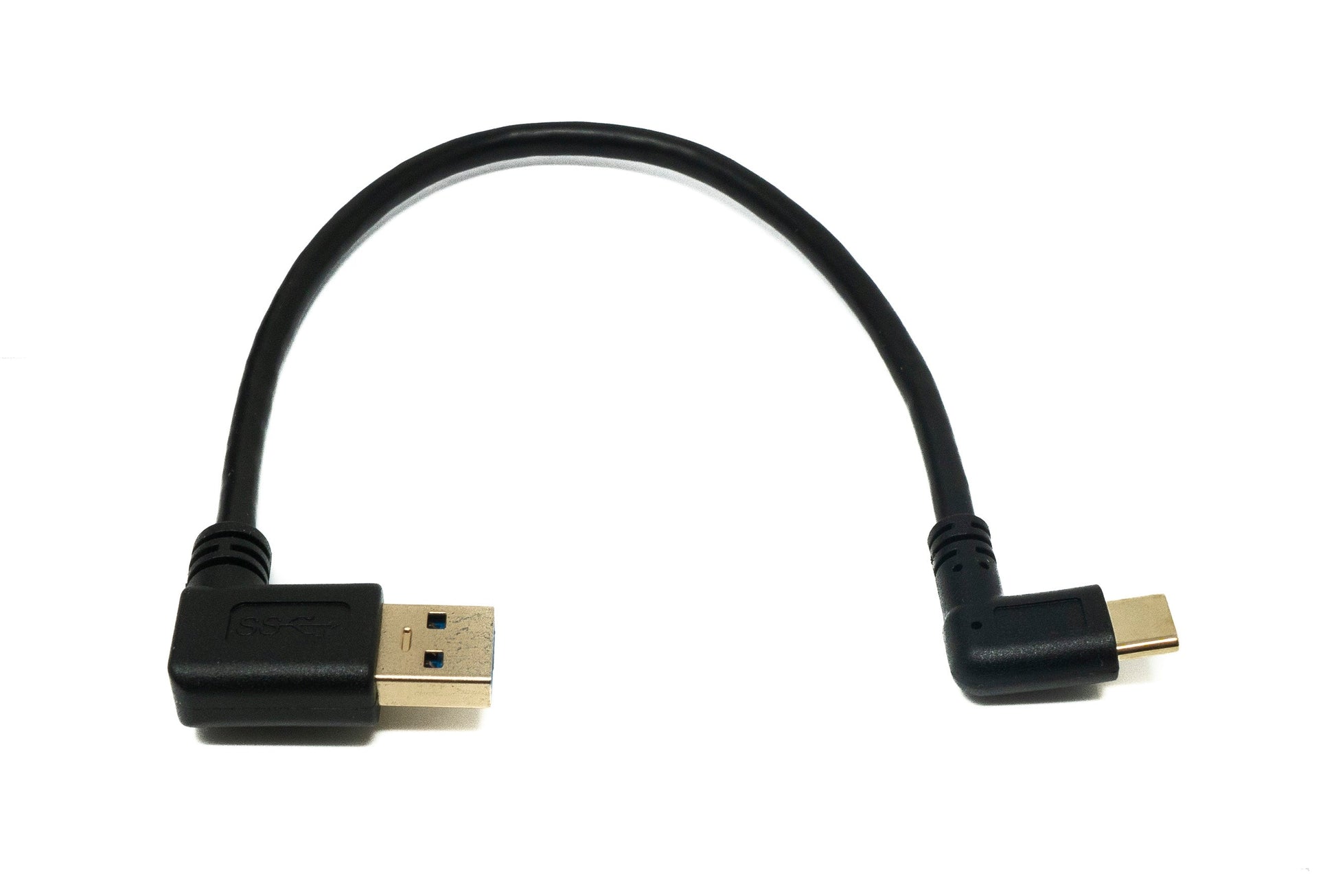 SYSTEM-S USB 3.1 snúra 25 cm Type C karlkyns í 3.0 Type A karlkyns vinstri hornkaðall