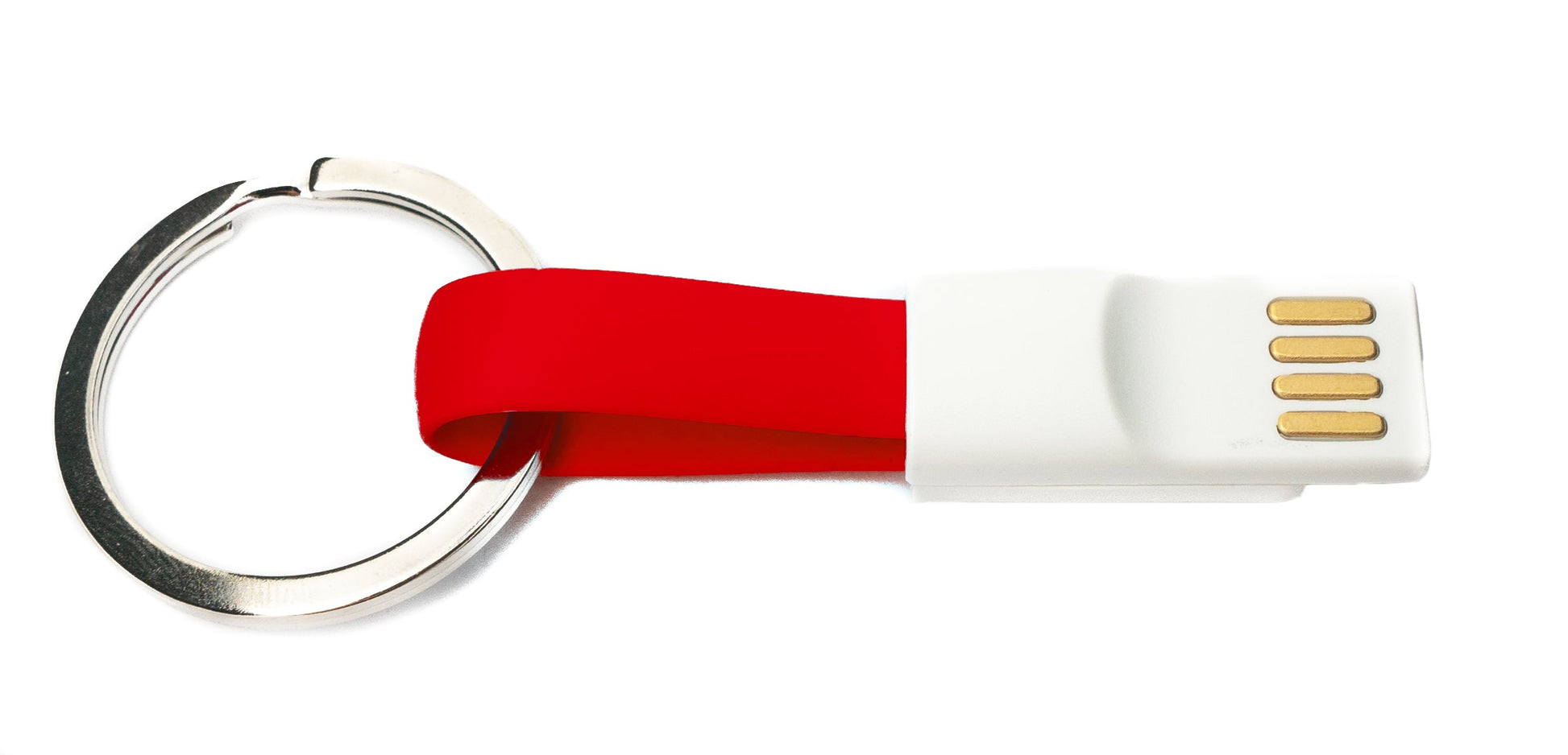 Hægt er að bera snúruna sem lyklakippu með meðfylgjandi hring - tengin eru segulmagnaðir