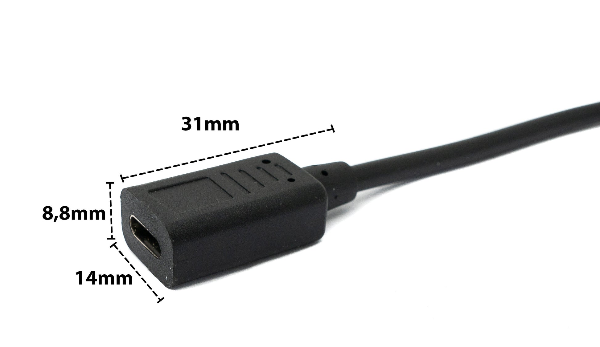 Kabellänge und Abmessungen: Das Kabel hat eine Länge von 30 cm und verfügt über eine Typ-C-Buchse mit den Maßen 3,0 x 1,3 x 1,0 cm und einen Typ-C-Stecker mit den Maßen 1,7 x 1,0 x 1,6 cm. Das Produkt wiegt 12 g und wird in einer Poly Bag Verpackung geliefert.