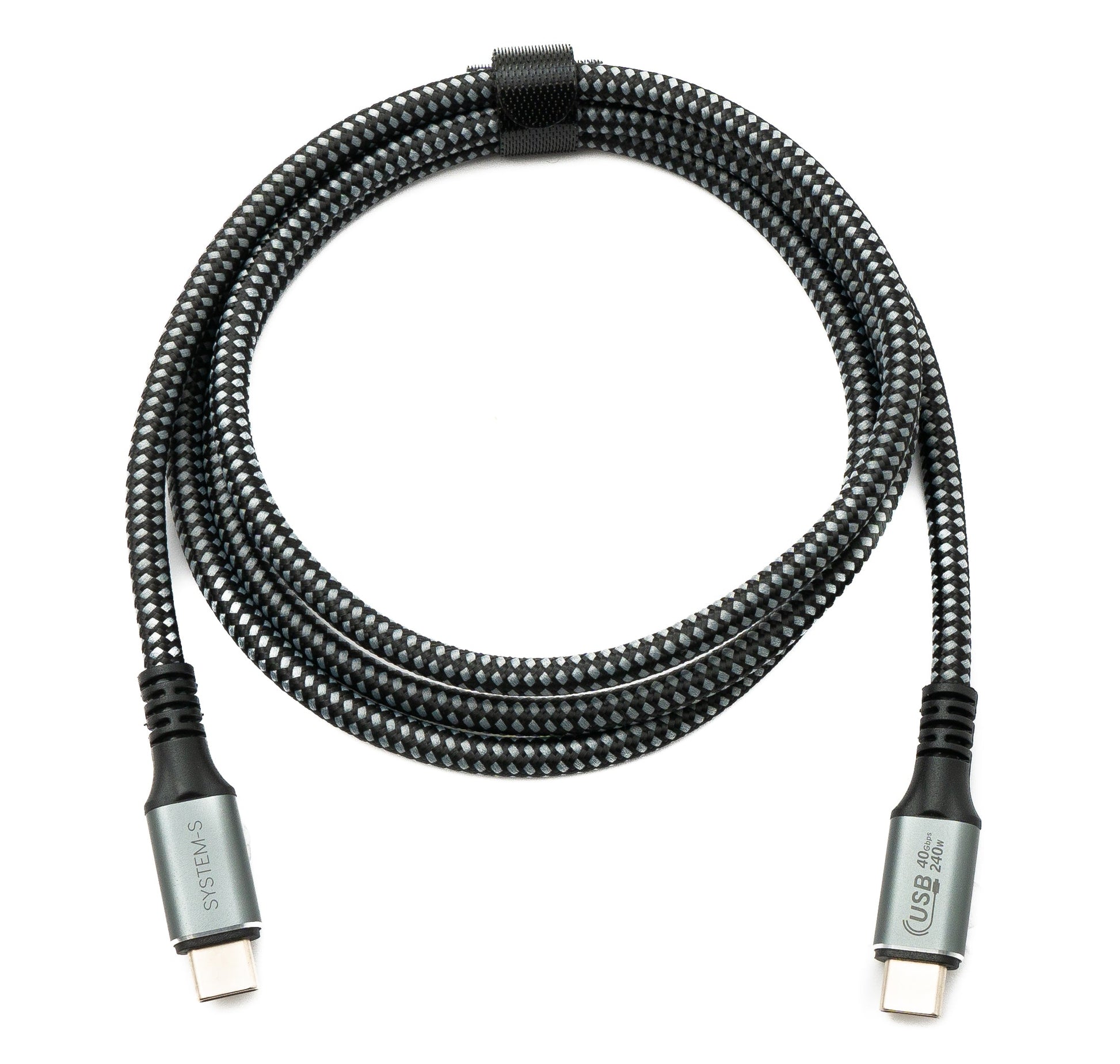 SYSTEM-S USB4 USB 120 cm snúra Tegund C karlkyns í karlkyns fléttuð 40 Gbit/s 240 W USB 4.0 snúra