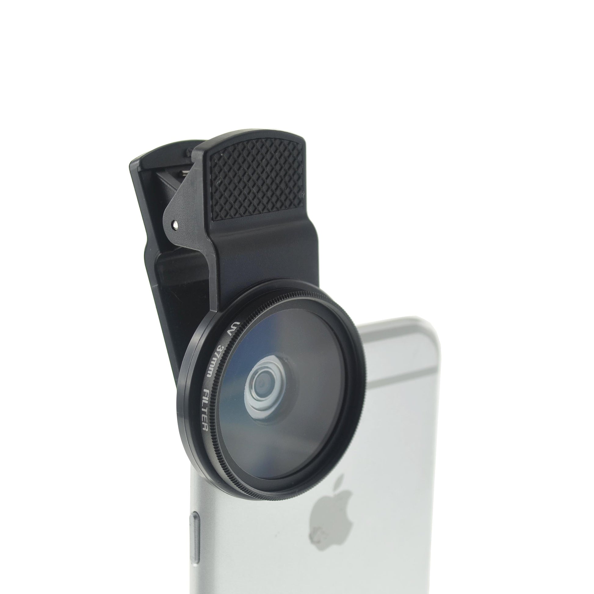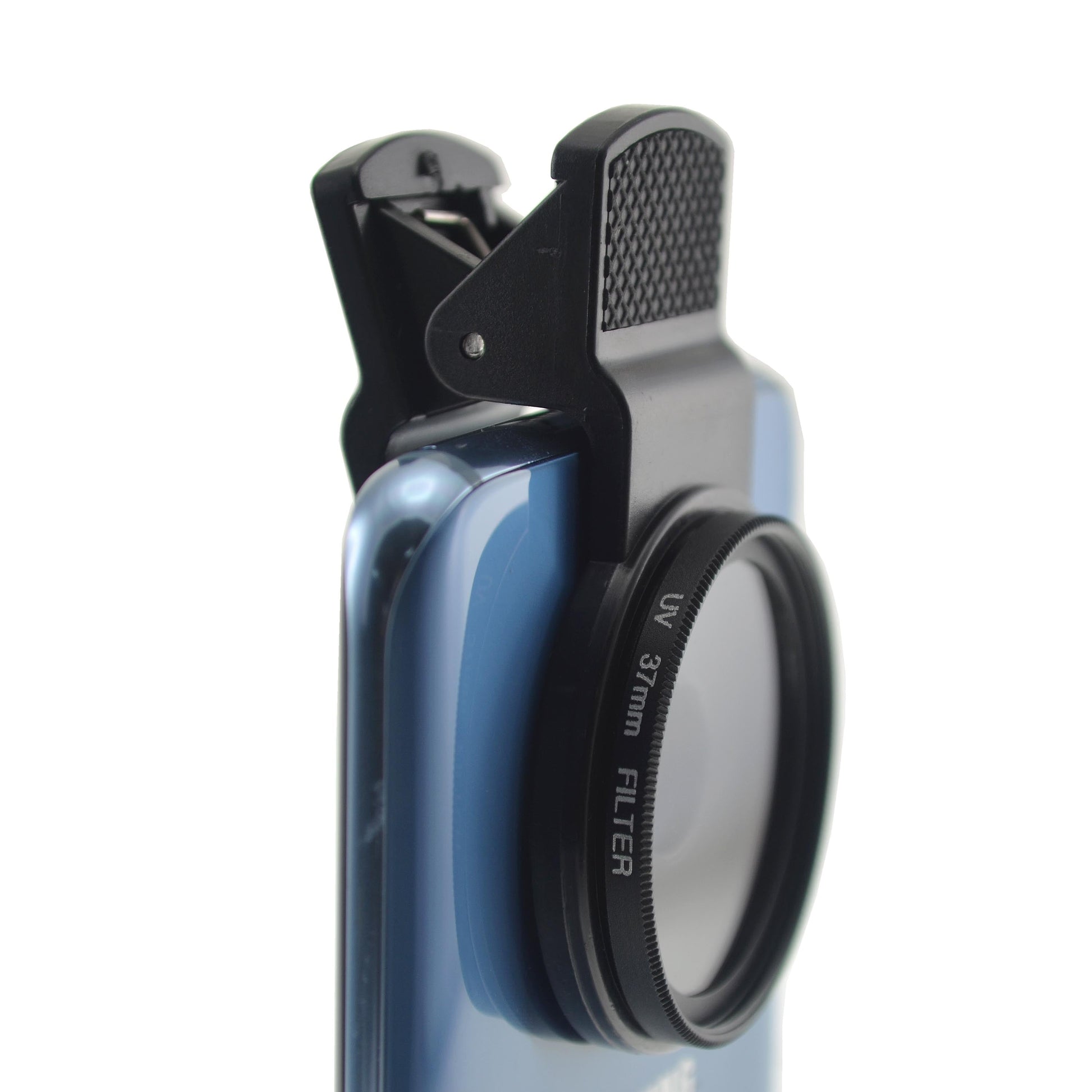 - Klemma með skrúfu: Meðfylgjandi klemmufesting er með 37 mm skrúfu sem auðvelt er að skrúfa á snjallsímann þinn til að festa UV-síuna.