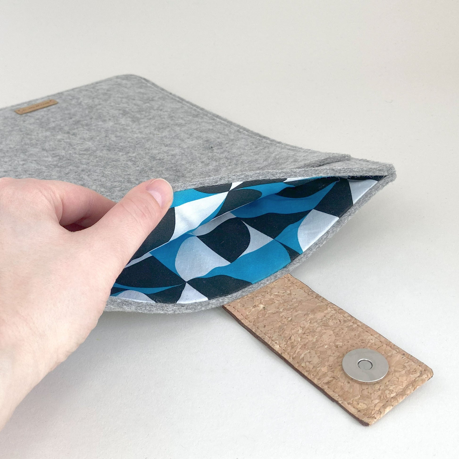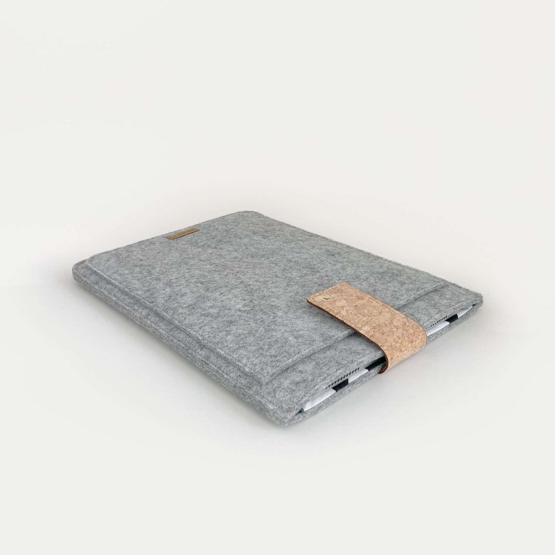 Maßanfertigung statt Standardlösung, und das in 1-2 Werktagen. Mit unserer Tablethülle nach Maß hat das Suchen und Herumprobieren endlich ein Ende. Jedes Tablet, egal ob mit Cover, Tastatur, Stift oder komplett clean wird sich in unserer passgenauen Schutzhülle wohlfühlen. Stilvoll und ohne Schnickschnack. Gleichmäßige Nähte und Kanten zeigen unsere Liebe fürs Detail. Dabei verarbeiten wir nachhaltige Materialien in Bio-Qualität und von ausgewählten Schäfern. Hergestellt in Deutschland in unserer eigenen Manufaktur, wird die Hülle mit einer innovativen Verschlusslasche aus robustem Kork angeboten. Der flache, magnetische Knopf garantiert Sicherheit und Stil. Ein integriertes Fach an der Vorderseite bietet schnellen Zugriff auf Notizzettel, Kabel und andere kleine Gegenstände, um alles sicher und organisiert zu halten.