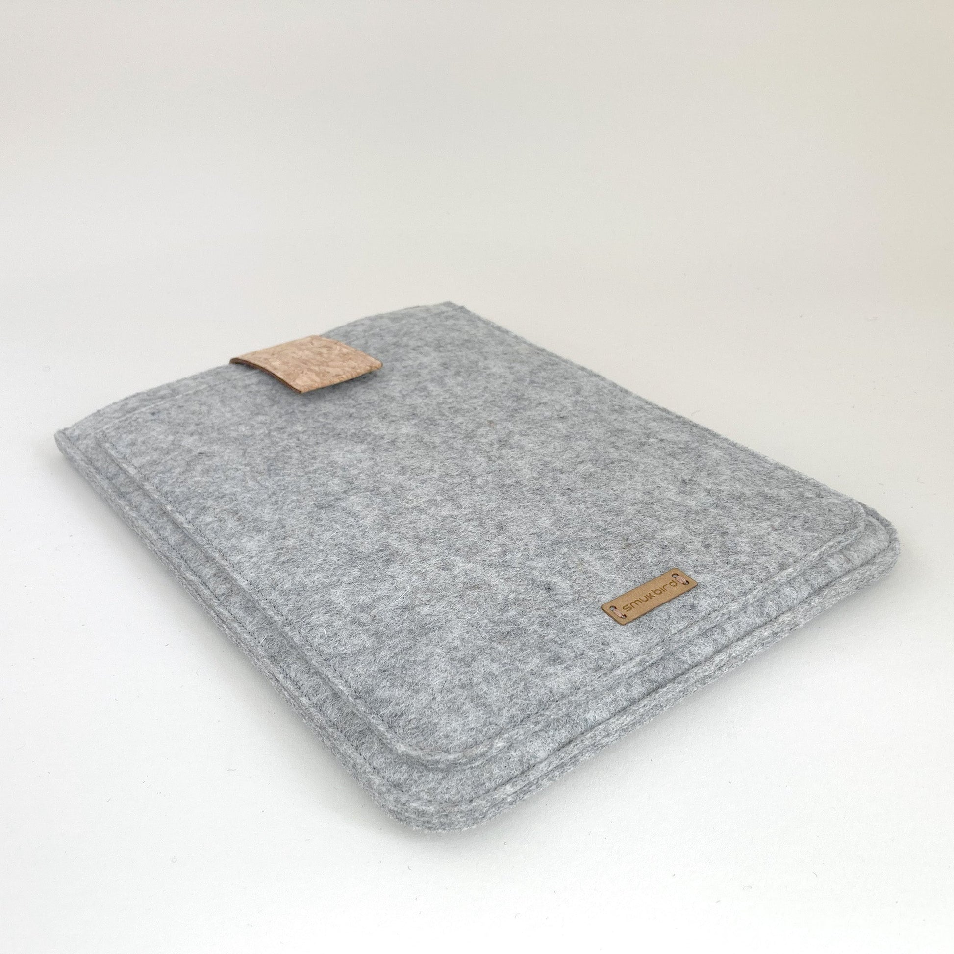 Maßanfertigung statt Standardlösung, und das in 1-2 Werktagen. Mit unserer Tablethülle nach Maß hat das Suchen und Herumprobieren endlich ein Ende. Jedes Tablet, egal ob mit Cover, Tastatur, Stift oder komplett clean wird sich in unserer passgenauen Schutzhülle wohlfühlen. Stilvoll und ohne Schnickschnack. Gleichmäßige Nähte und Kanten zeigen unsere Liebe fürs Detail. Dabei verarbeiten wir nachhaltige Materialien in Bio-Qualität und von ausgewählten Schäfern. Hergestellt in Deutschland in unserer eigenen Manufaktur, wird die Hülle mit einer innovativen Verschlusslasche aus robustem Kork angeboten. Der flache, magnetische Knopf garantiert Sicherheit und Stil. Ein integriertes Fach an der Vorderseite bietet schnellen Zugriff auf Notizzettel, Kabel und andere kleine Gegenstände, um alles sicher und organisiert zu halten.