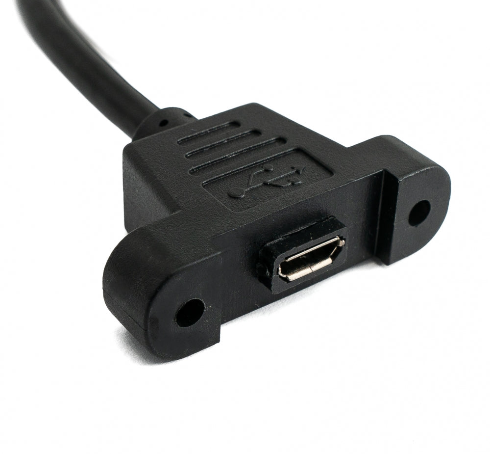 USB 2.0 snúra 30 cm Micro B kvenkyns í karlkyns skrúfuhornssvört