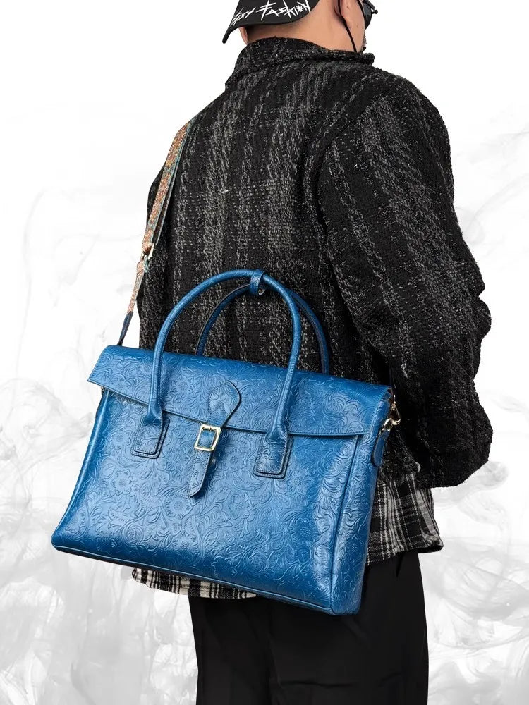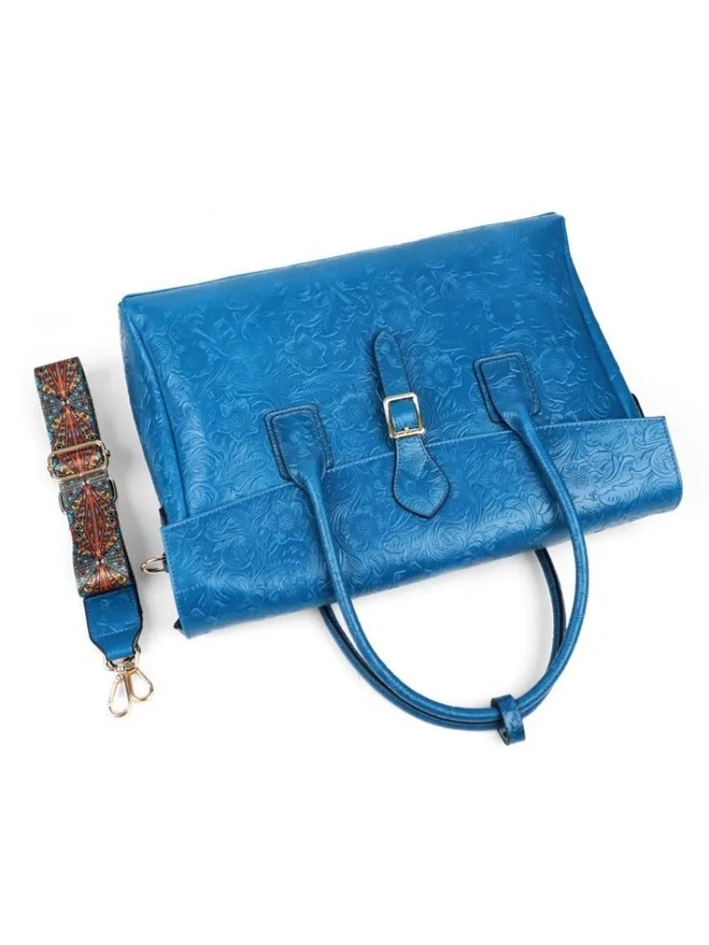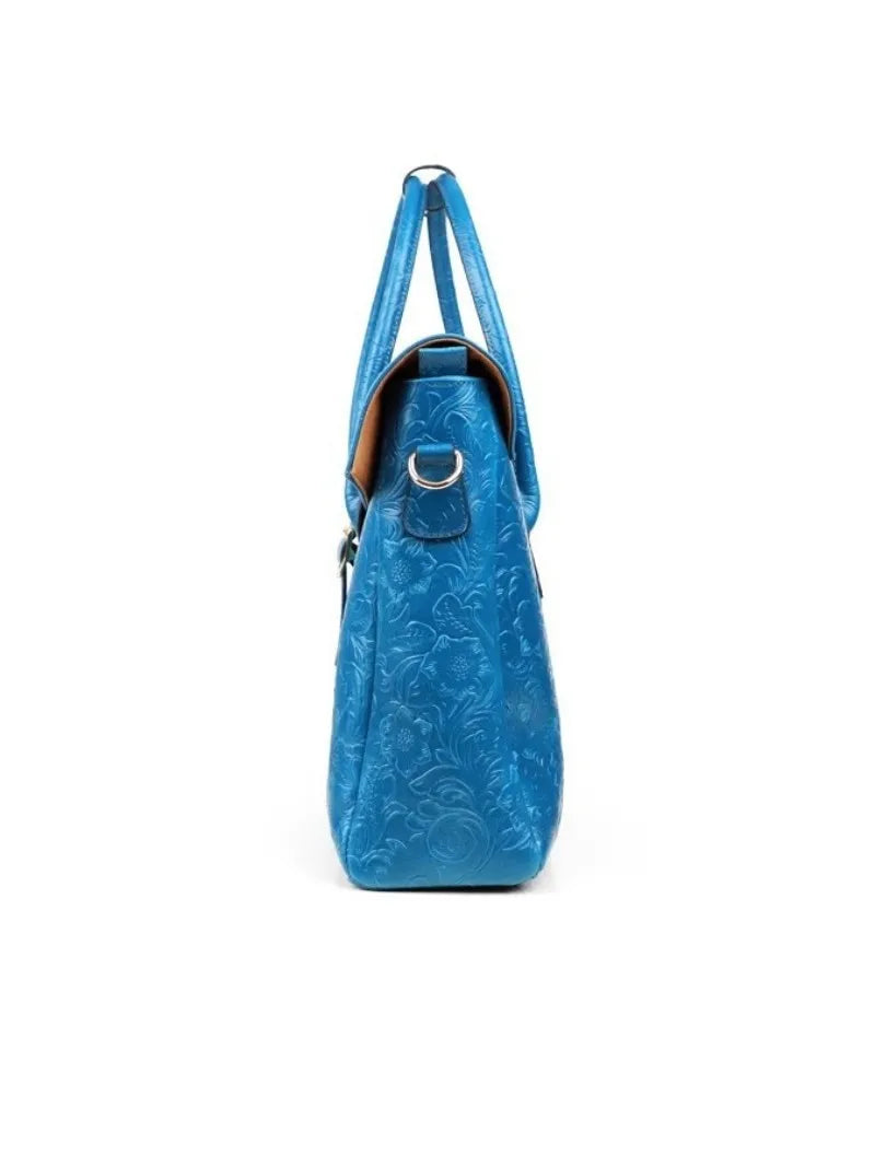 Vintage blómaskorin leðurtaska með einni öxl og viðskiptatösku