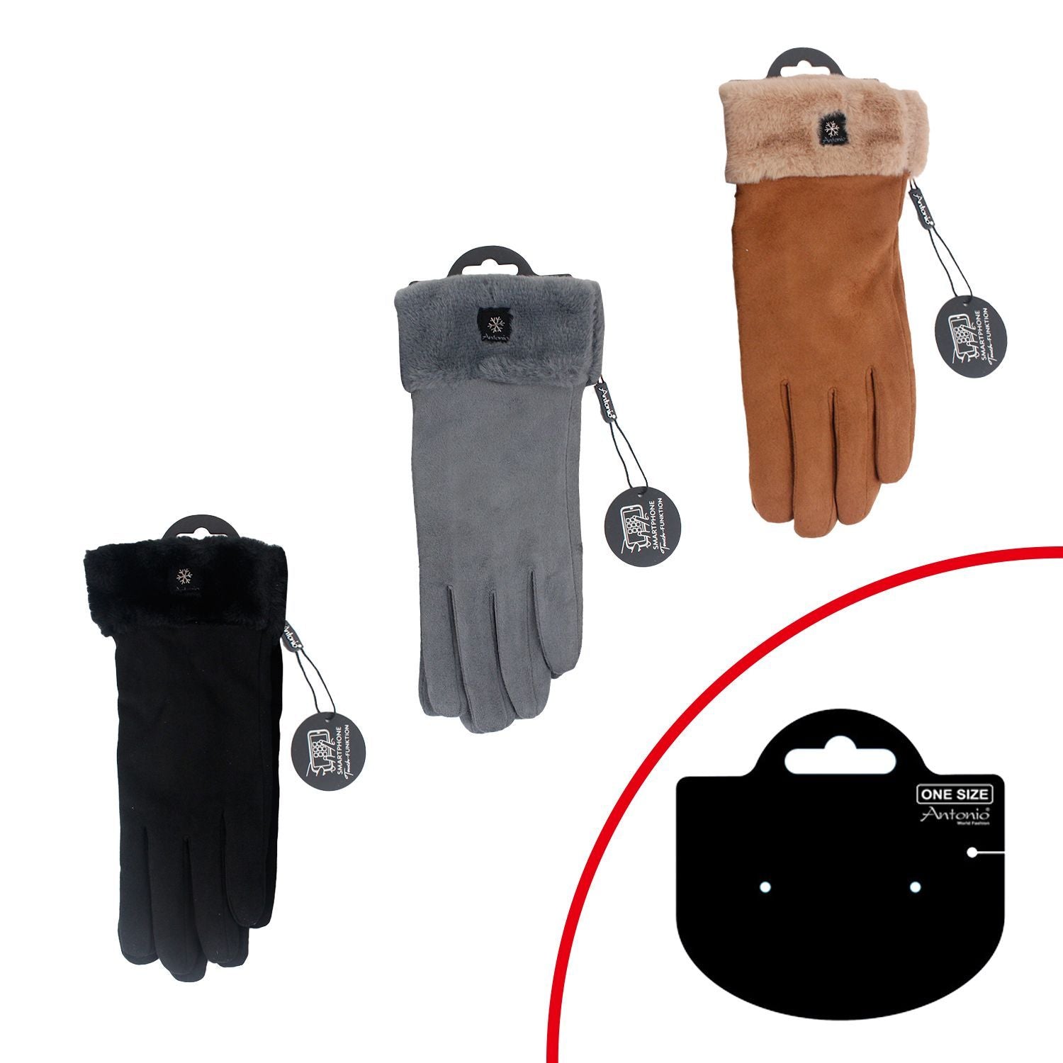 Winter Handschuhe » Gefütterte Fingerhandschuhe Suede mit Thermo Teddy » Winterhandschuhe mit Touchfunktion