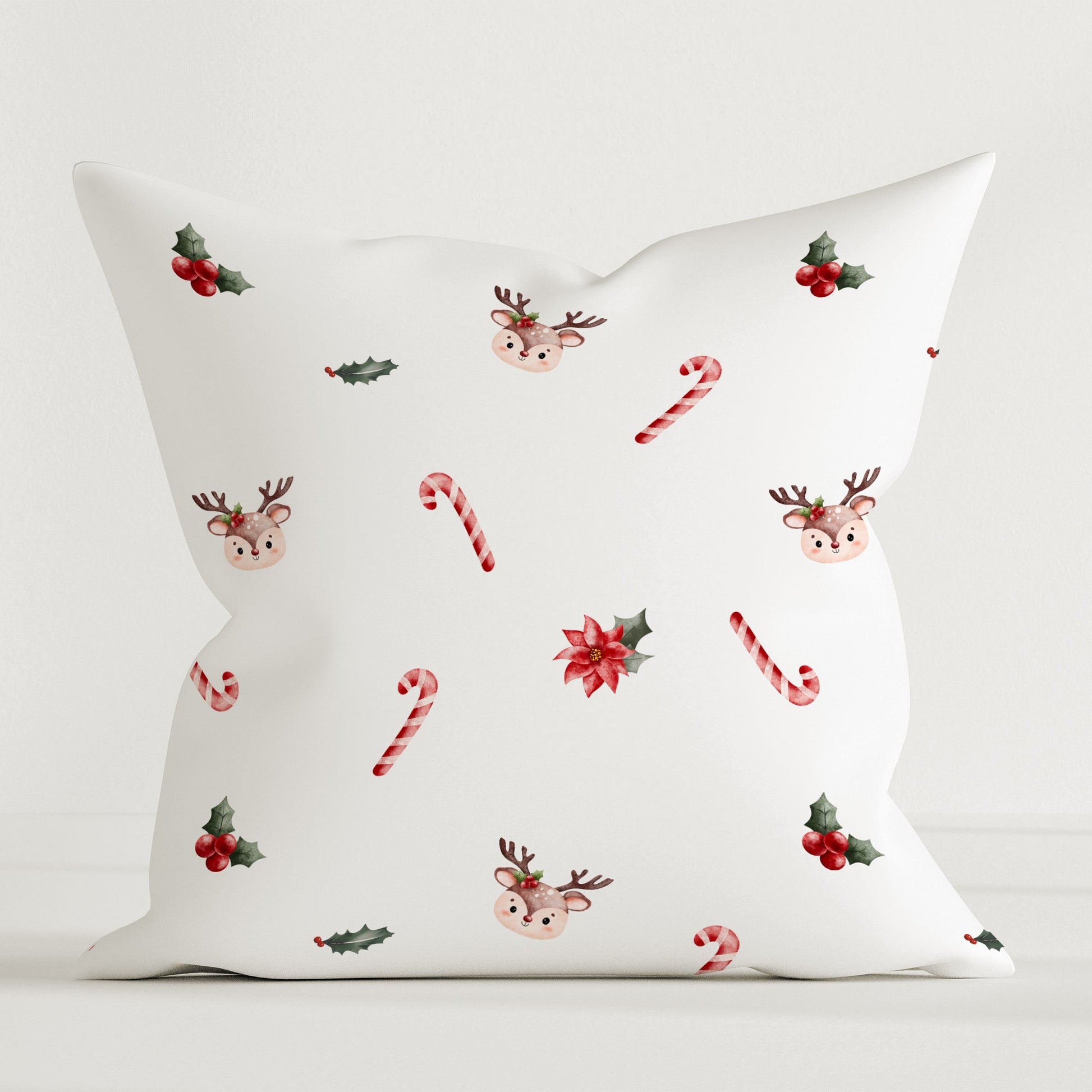 Vetrargaldrar og sætir draumar: Skreytipúðinn „Candy Canes & Deer“ flytur litla draumóramenn til ævintýralegs vetrarundurheims þar sem fínlegir dýr leika sér kát meðal skærrauðra sælgætisstöngla. Með ástúðlegri og nákvæmri hönnun fangar púðinn sjarma jólanna og færir notalega og hátíðlega stemningu í hvaða barnaherbergi sem er. Púðaverið er úr 100% hreinni bómull og býður upp á notalega þægindi og býður börnum að sökkva sér niður í heim vetrarundra og sætra ævintýra. Fullkomið fyrir litla draumóramenn sem elska galdra jólanna og vilja láta ímyndunaraflið ráða för!