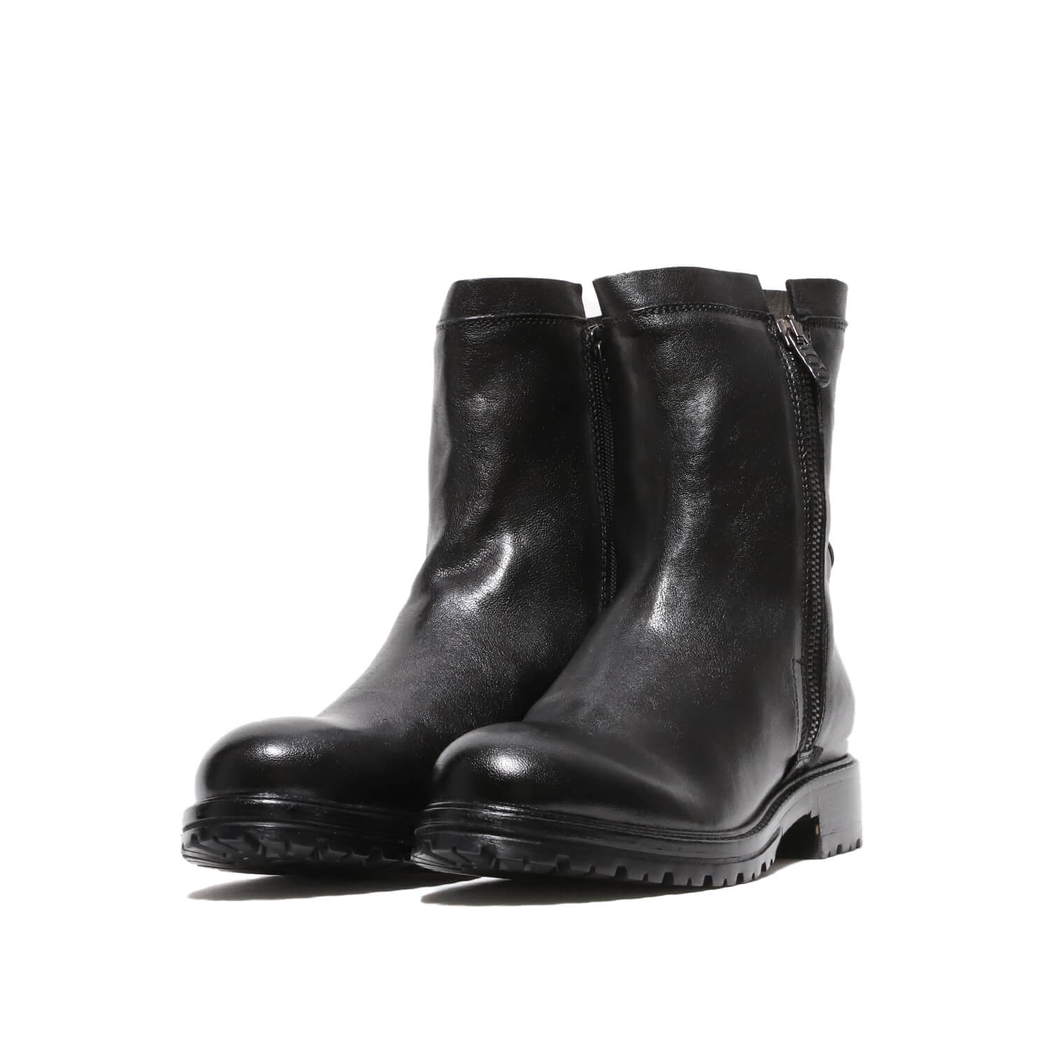 Step up your shoe game with these stylish black leather ankle boots! Featuring a double zip for easy on-and-off access, a durable leather and rubber lug sole, and a comfortable 3 cm heel, these boots are perfect for any occasion. Whether you're running errands or hitting the town, these boots will keep you looking and feeling great. Don't settle for ordinary shoes - upgrade to these sleek and sophisticated boots from HUNDRED 100 today!
