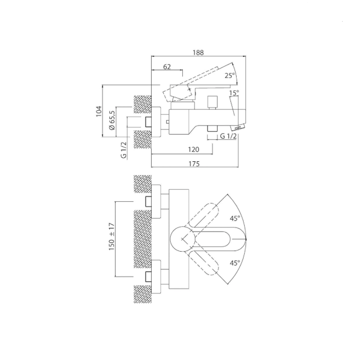 - Manuelle Umstellung ermöglicht den Wechsel zwischen Wannenbefüllung und Brausenutzung