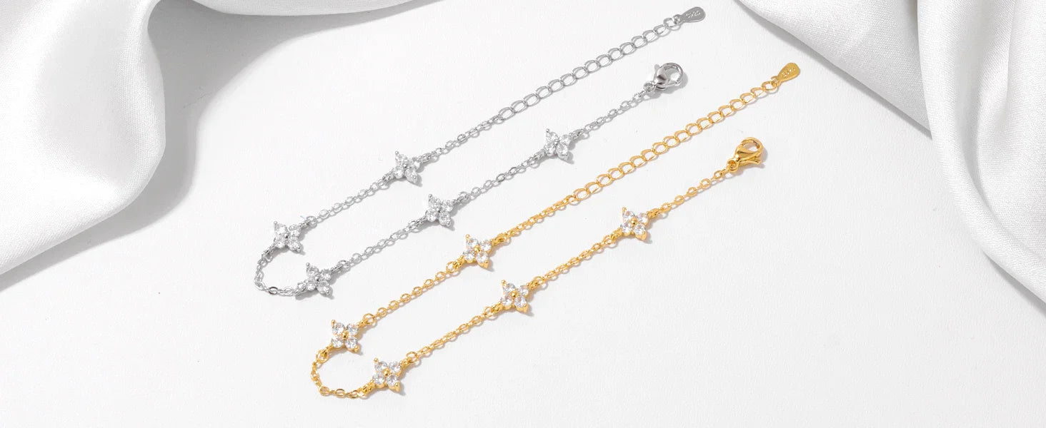 Armband aus 925er-Sterling-Silber, vierblättriges Blumenarmband, 19cm