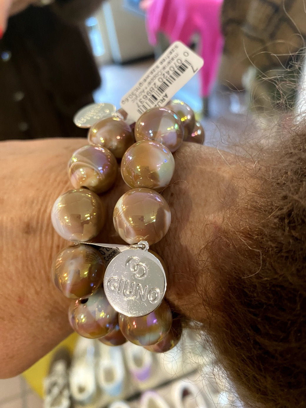 Dieses elegante elastische Armband ist ein wahrer Hingucker. Die Perlen aus glänzendem Acryl und Kupfer in einem eleganten Braun Perlmutt bringen Farbe und Leben in jedes Outfit. Perfekt für den Tag oder einen besonderen Anlass. Zeigen Sie Ihre Persönlichkeit mit diesem wunderschönen Perlmutt Design!