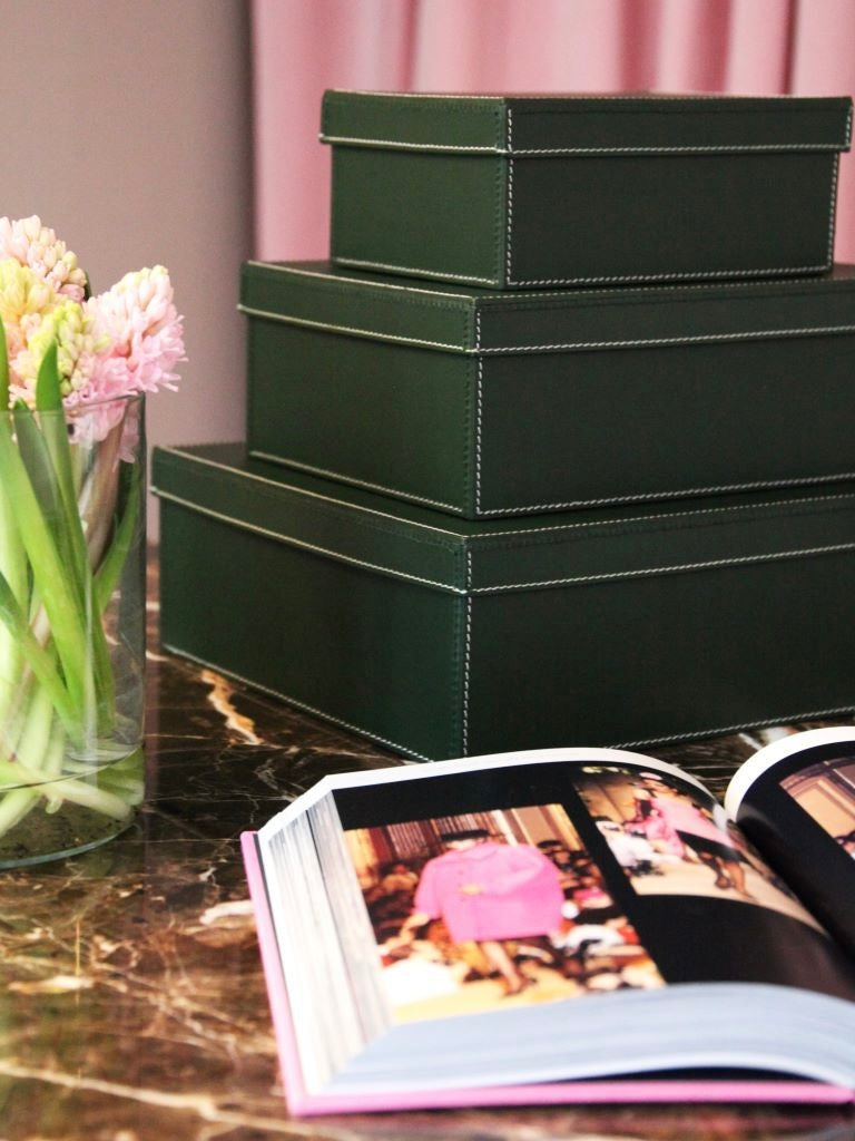 Aufbewahrungsbox mit Deckel Leder schwarz, in 3 Größen