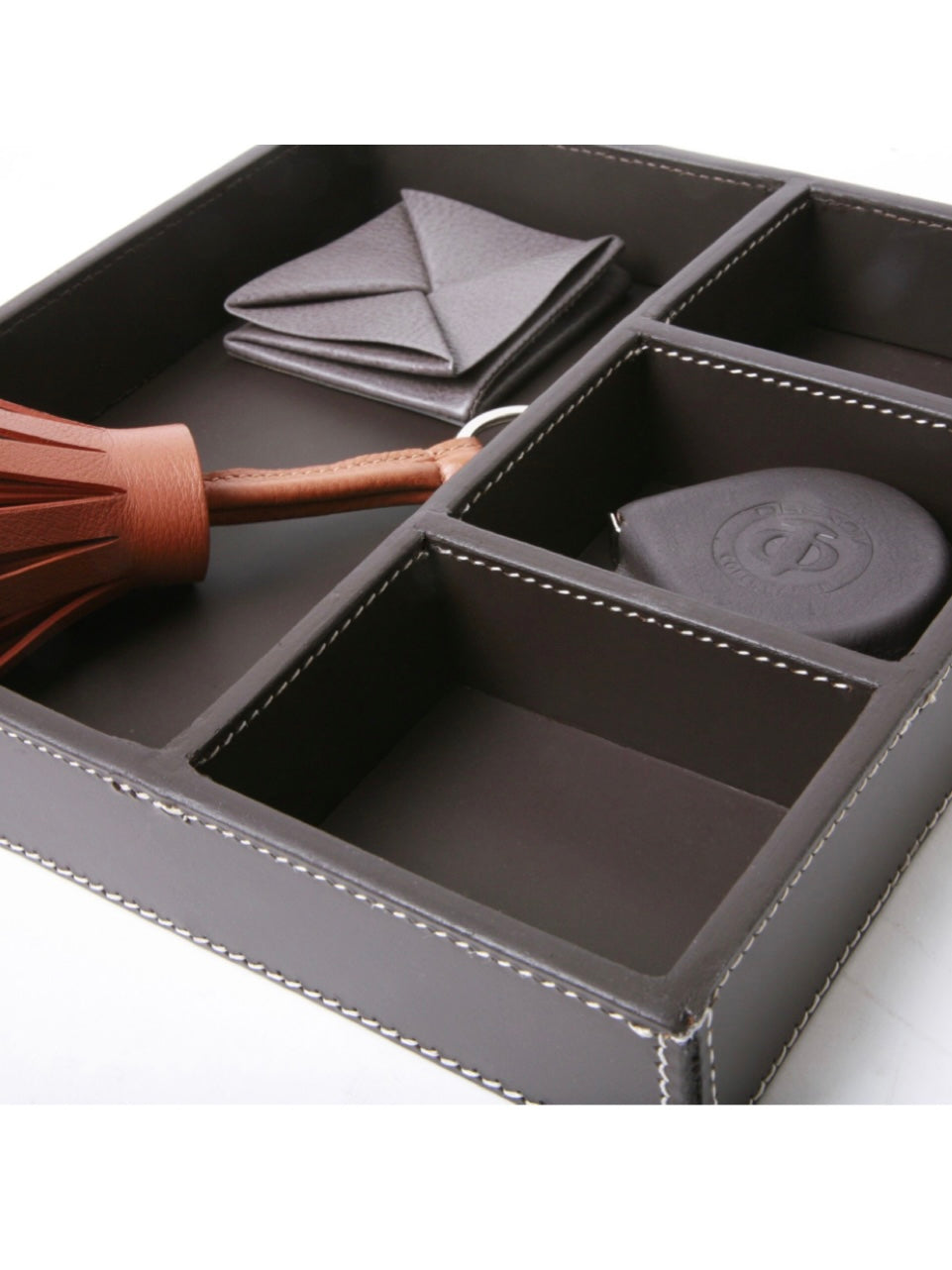 Aufbewahrungstablett 4 Fächer Leder schwarz