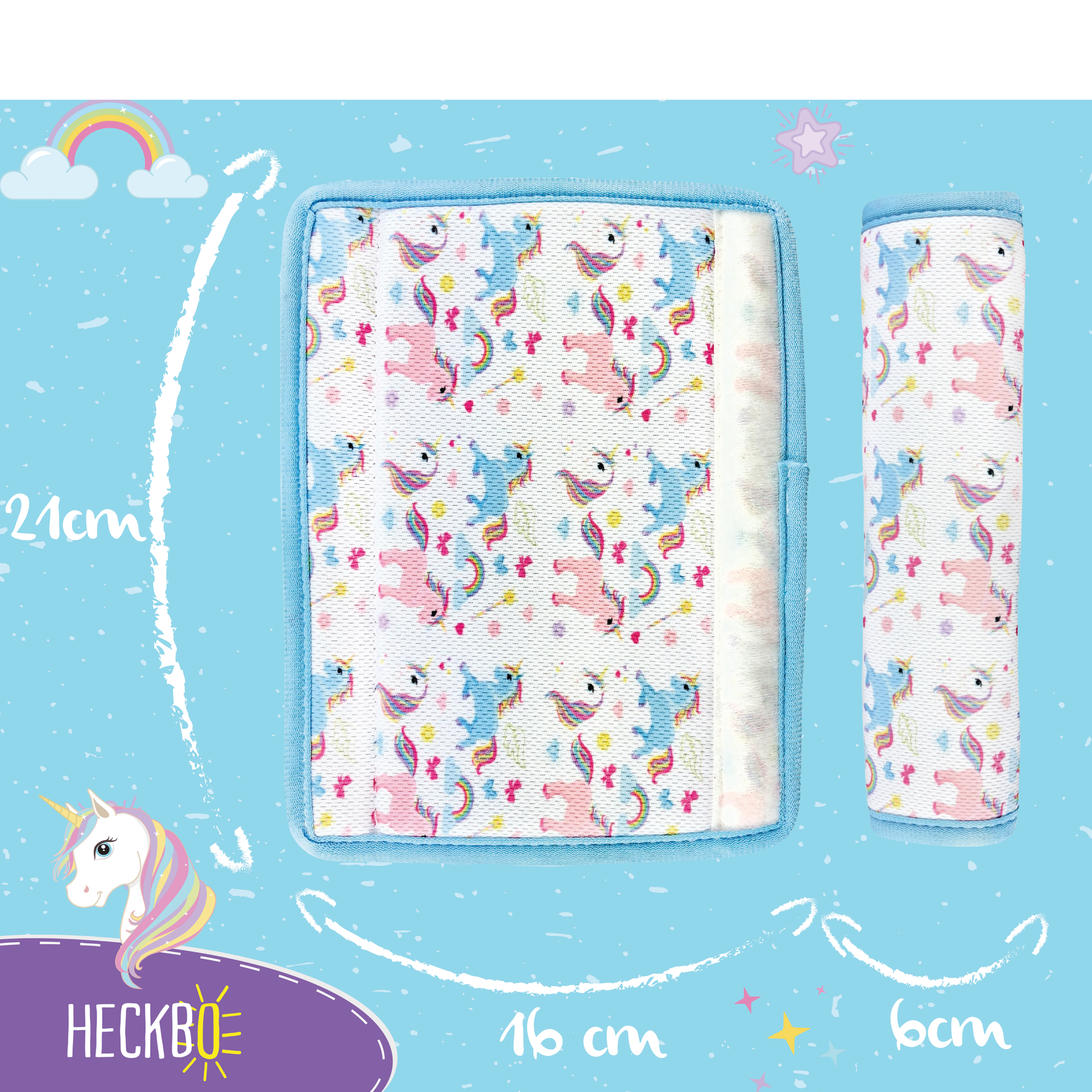 🦄 KINDERGERECHTES EINHORN-MOTIV: HECKBO Gurtschoner mit zauberhaftem Einhorn-Design in zarten Farben sowie niedlichen Details wie Zauberstäben, Schleifen, Schmetterlingen und Diamanten – ein Must-have für kleine Einhorn-Fans.