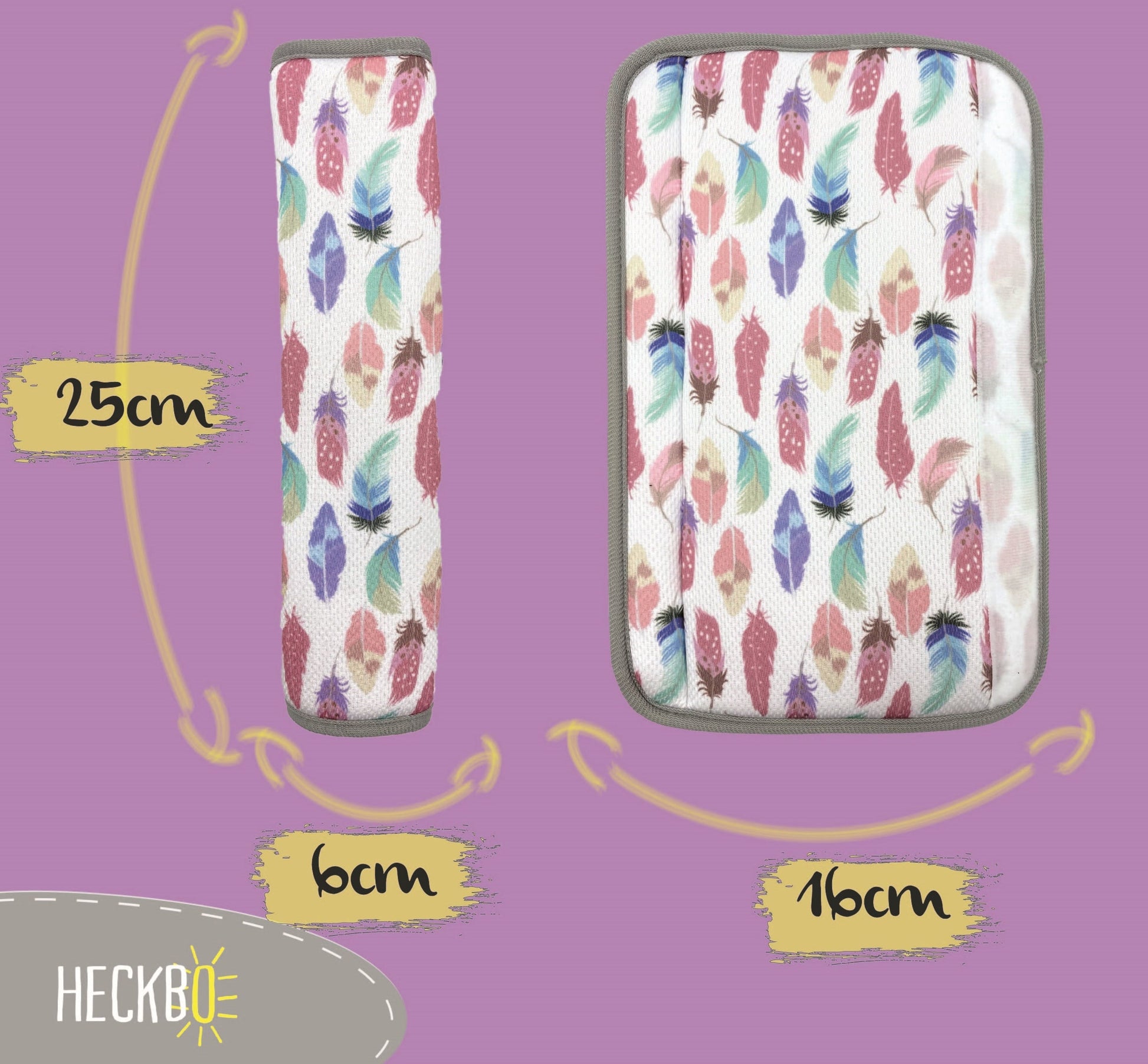 Ob einzeln oder im Doppelpack – der HECKBO Gurtschoner für Erwachsene besticht durch ein stilvolles Federn-Motiv in harmonischen Farben wie Rosa, Weiß, Lila, Grau, Türkis und Gelb. Ein elegantes Accessoire für jedes Fahrzeuginterieur.