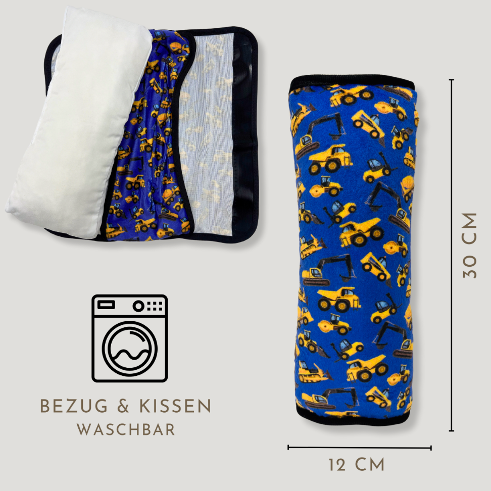 🛠️ SPIELERISCHES DESIGN: Das farbenfrohe Baufahrzeuge-Design macht jede Autofahrt zu einem kleinen Abenteuer. Kinder lieben es, umgeben von ihren Lieblingsfahrzeugen zu reisen und sich wohlzufühlen.