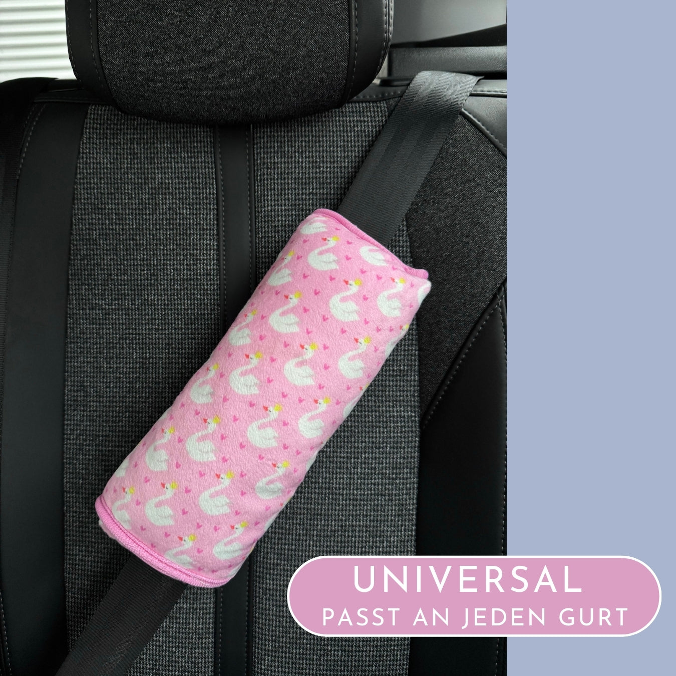 🎀 ZAUBERHAFTES DESIGN FÜR KINDER: Das liebevoll gestaltete Schwanenmotiv mit Herzen macht das Gurtkissen zu einem echten Hingucker und sorgt für Begeisterung bei den Kleinen. Die lebendigen Farben verwandeln jede Autofahrt in ein stilvolles und gemütliches Erlebnis.