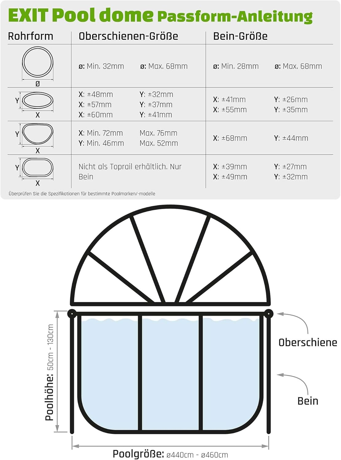 - Diese Poolabdeckung ist kompatibel mit ø450 cm Pools von EXIT Toys und anderen Marken mit gerader Beinanzahl. Das Produkt enthält ein Verbindungsset für Pools anderer Marken.