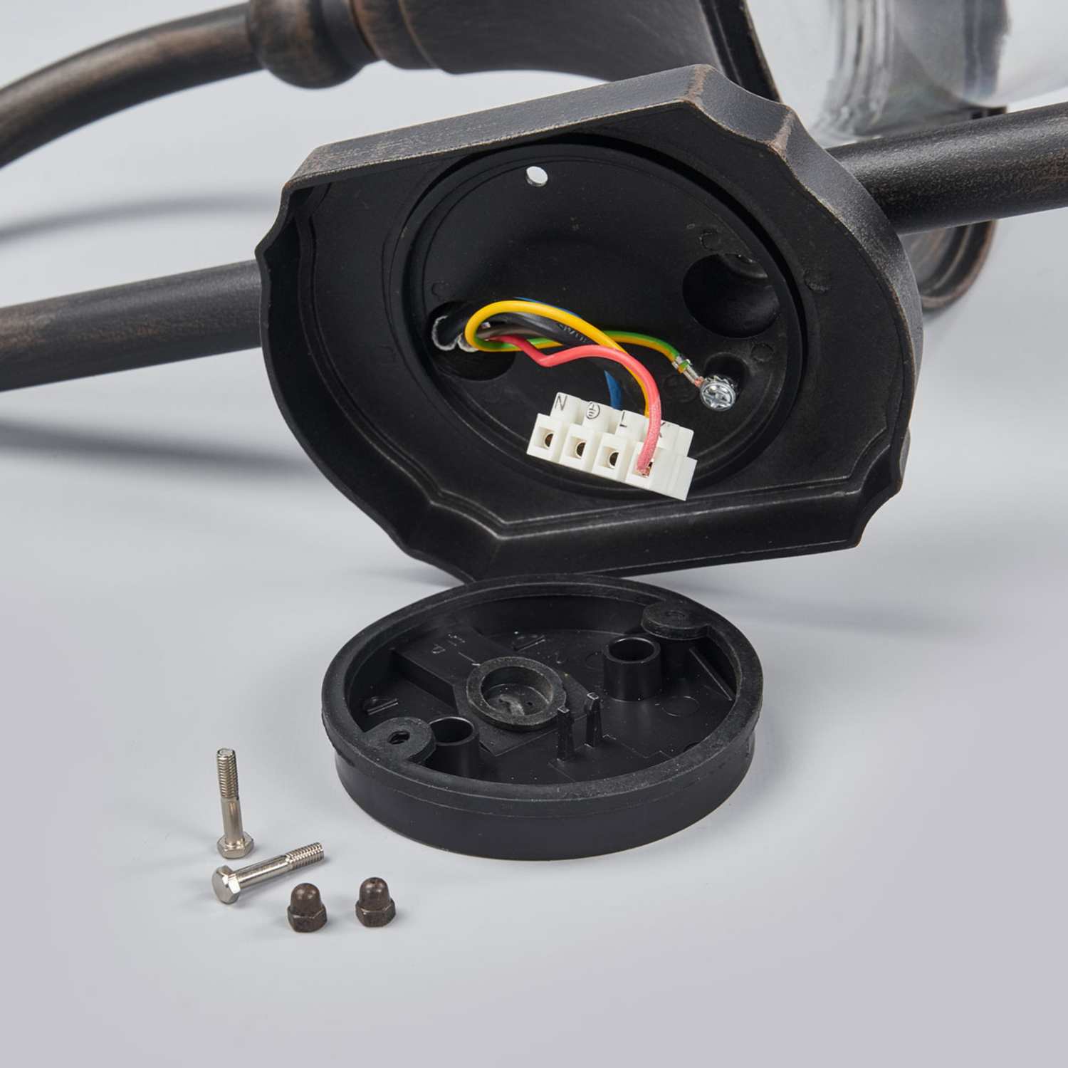 Damit die Außenwandleuchte möglichst effizient leuchtet, ist sie mit einem praktischen Bewegungsmelder versehen, der sich am unteren Ende des Gestells befindet. So wird sichergestellt, dass jede Bewegung im Umkreis erfasst wird und die Leuchte sich daraufhin einschaltet, sonst aber dunkel bleibt, wenn das Licht nicht benötigt wird.