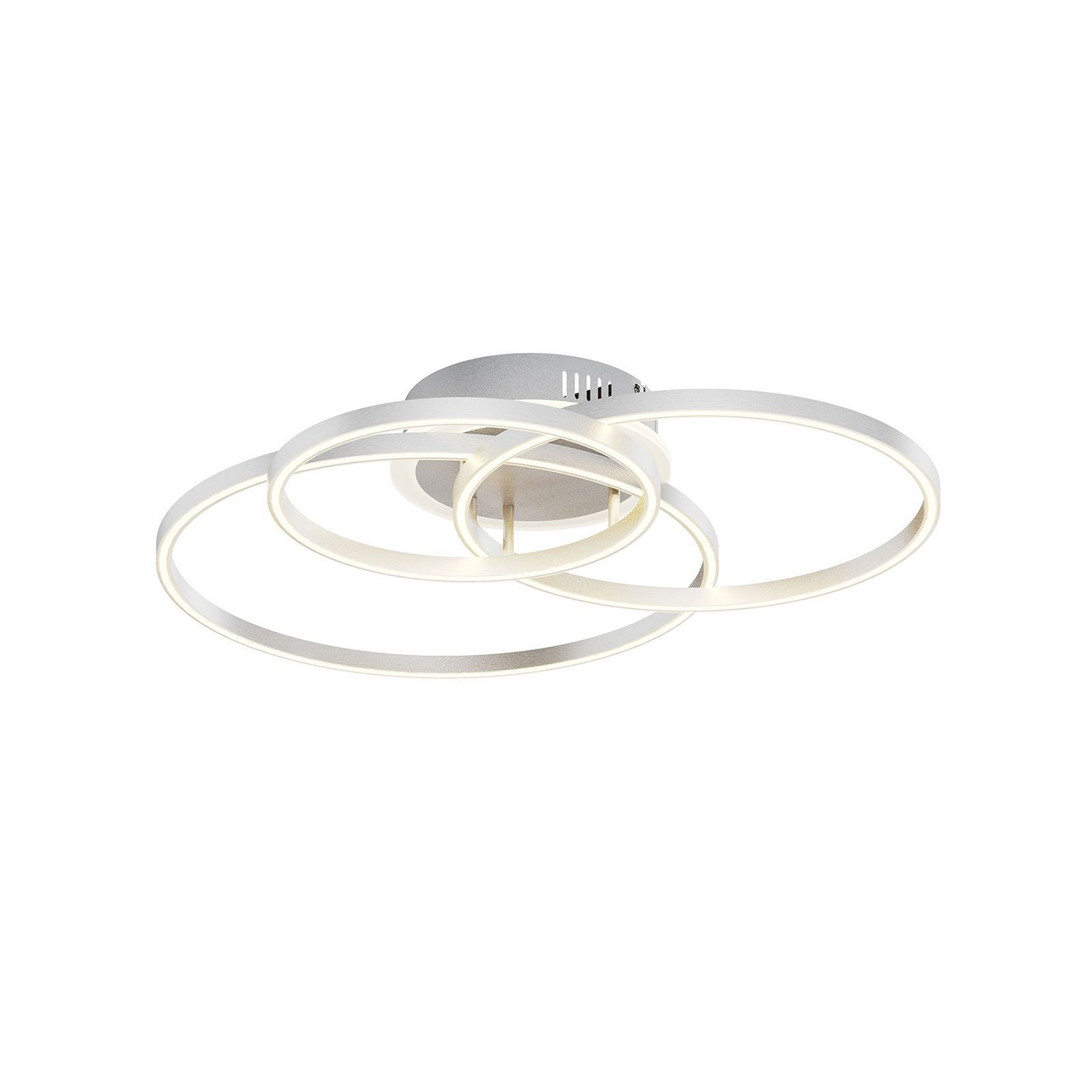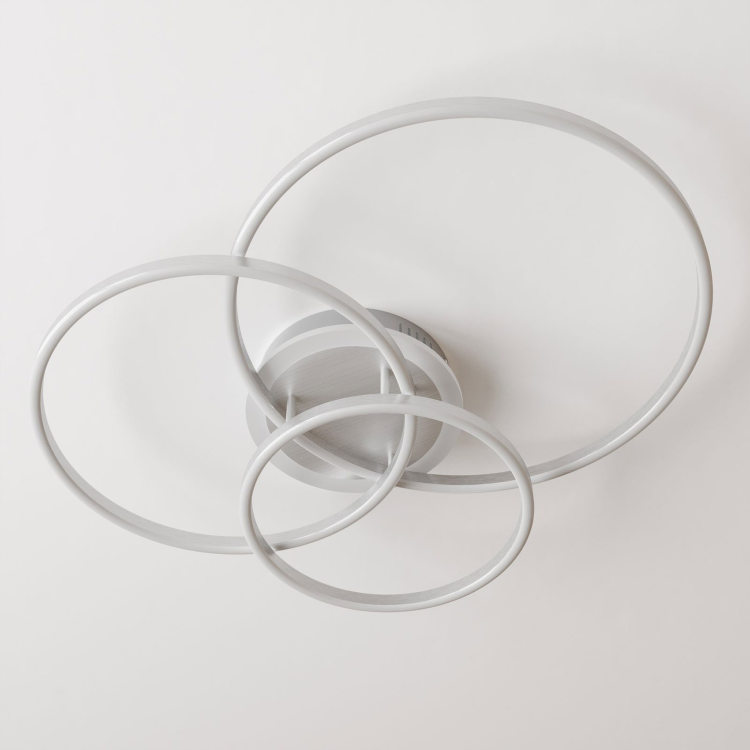 Unterschiedlich große Kreise bilden hier das Grundelement der modernen LED-Deckenleuchte Tula. Sie bietet für Wohnzimmer oder Flur eine zuverlässige Raumbeleuchtung, die zudem dimmbar und in der Lichtfarbe änderbar ist.
