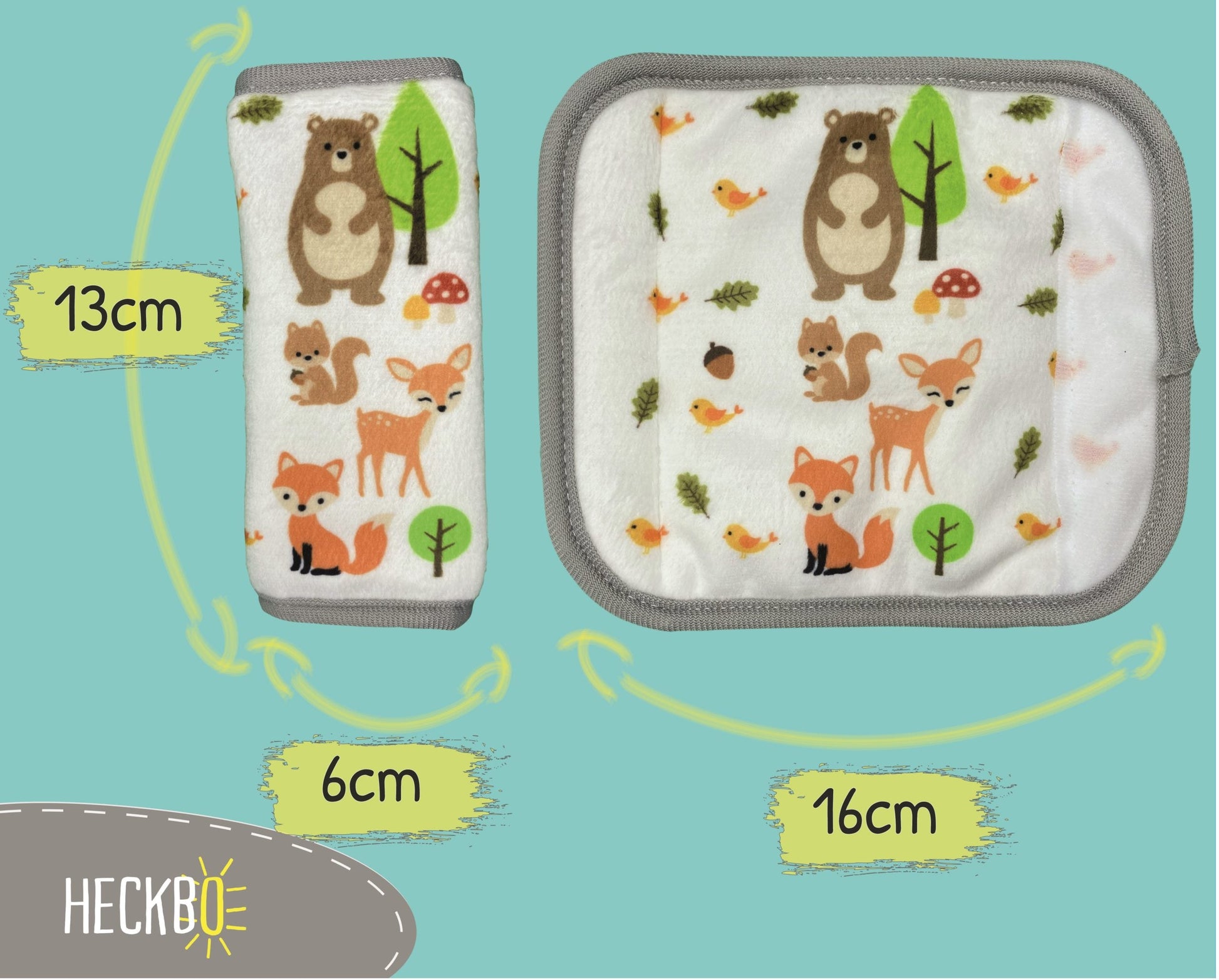 🌲 SICHERHEIT UND KOMFORT IM WALDTIER-DESIGN: Die HECKBO Gurtkissen im liebevollen Waldtier-Look schützen die empfindliche Kinderhaut zuverlässig vor Reibung und Druckstellen.