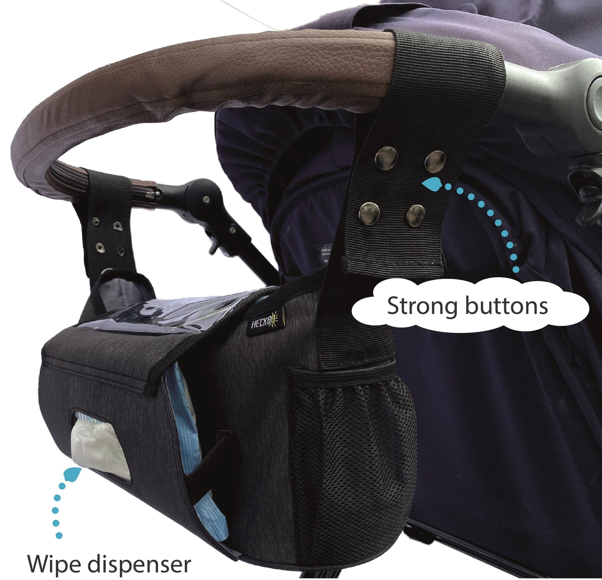 • 1x HECKBO Kinderwagentasche mit Feuchttuchspender & Smartphone-Fach