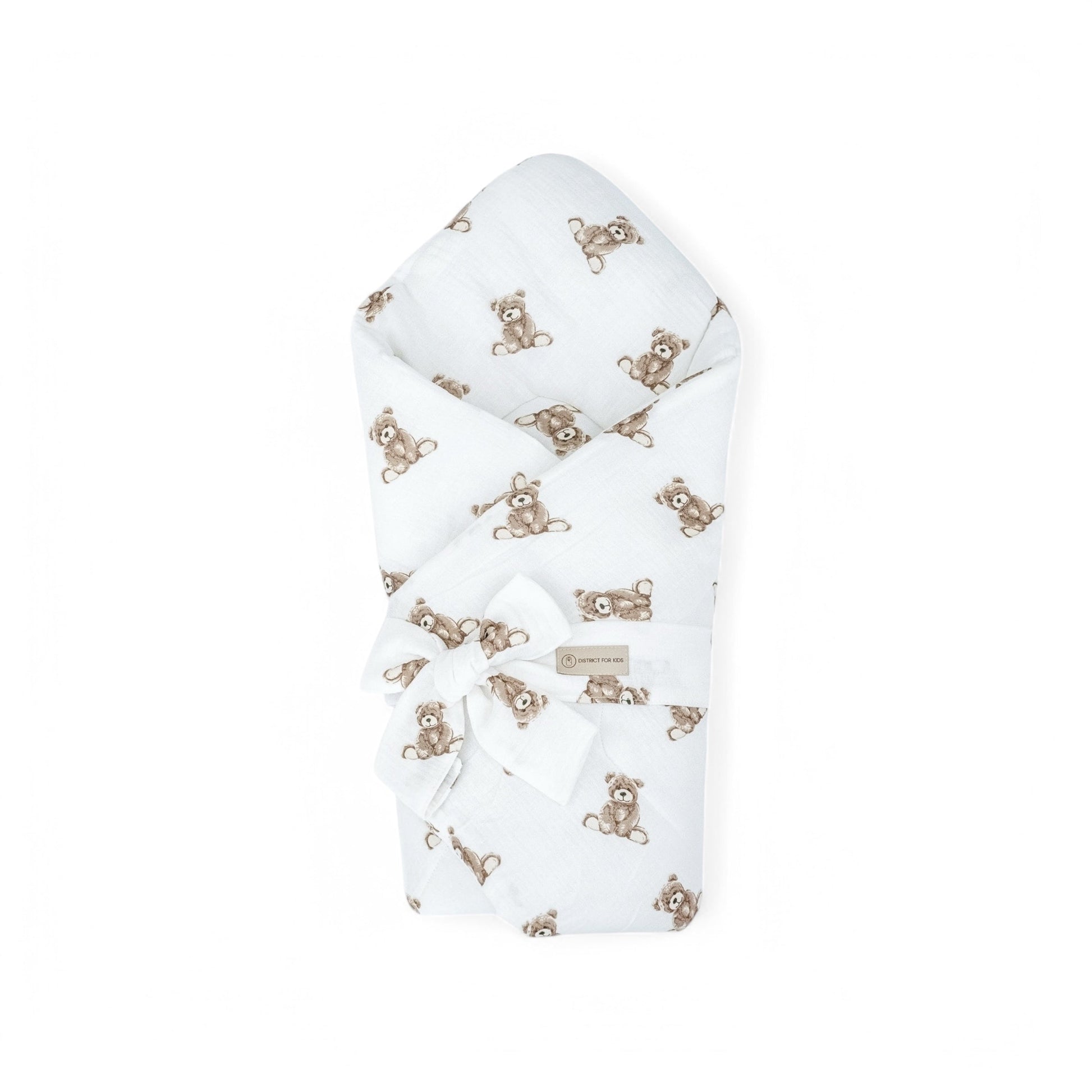 Babyhörnchen Musselin mit Schleife – Puckdecke & Einschlagdecke Muster Teddybär