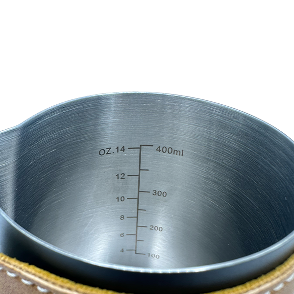 BaristaDelight Henkelless Milk Pitcher with Leather Sleeve