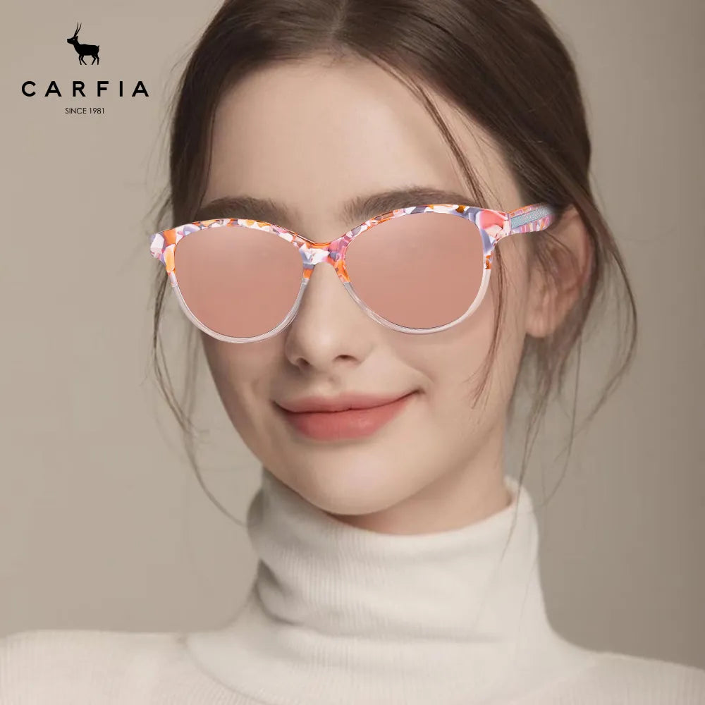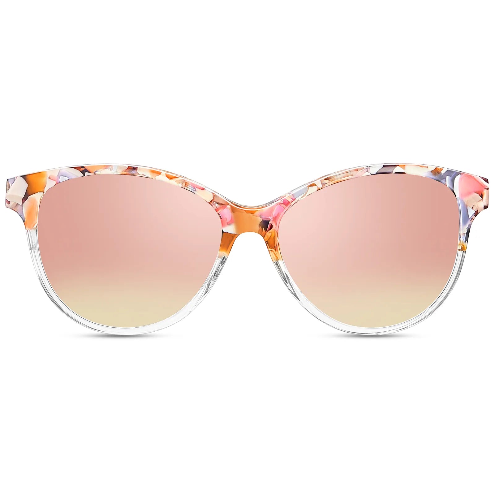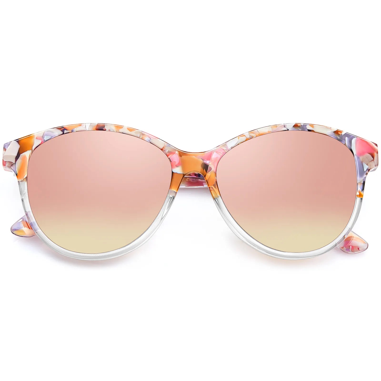 - Cateye Sunglasses for Women - These pink mirrored sunglasses for women will captivate you with their chic cat-eye style, sleek lines, and bold arms, showcasing your dazzling appeal and matching perfectly with accessories to make you shine. The flattering cat-eye shape imparts an on-trend look that beautifully complements oval, heart-shaped, round, square, and rectangular faces.