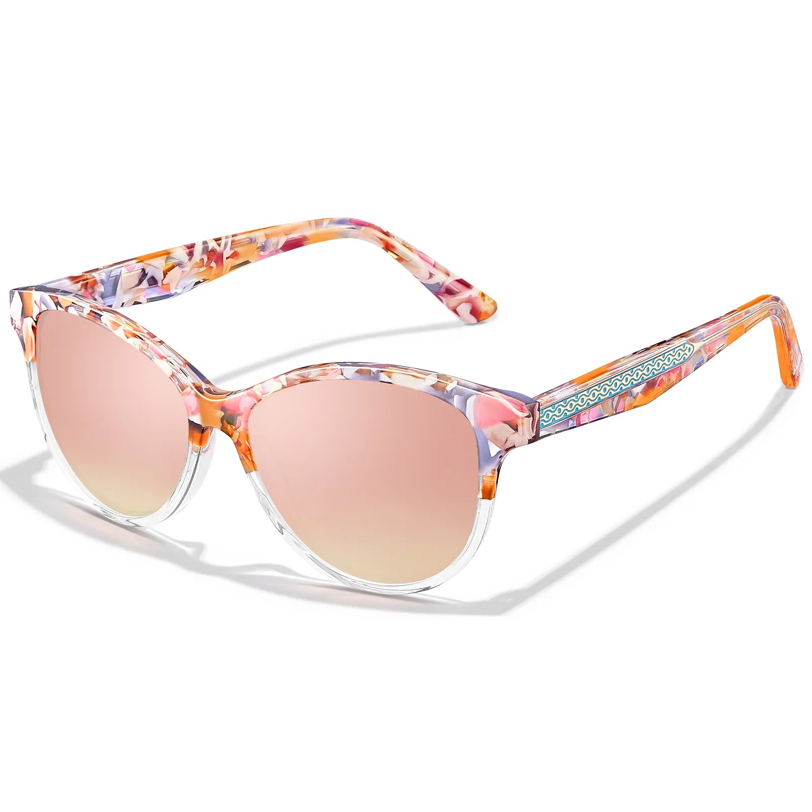 - Acetate Tortoise Frame Women's Sunglasses - Our pink sunglasses are made of hand-polished Italian acetate material. Compared to cheap plastic frames where the color is sprayed on, our glossy frame retains its color brightness impeccably over time because the hue is inherently embedded in the material. Thus, it avoids fading, peeling, yellowing, or other forms of discoloration. The hypoallergenic acetate is also resistant to cosmetics and sweat corrosion.