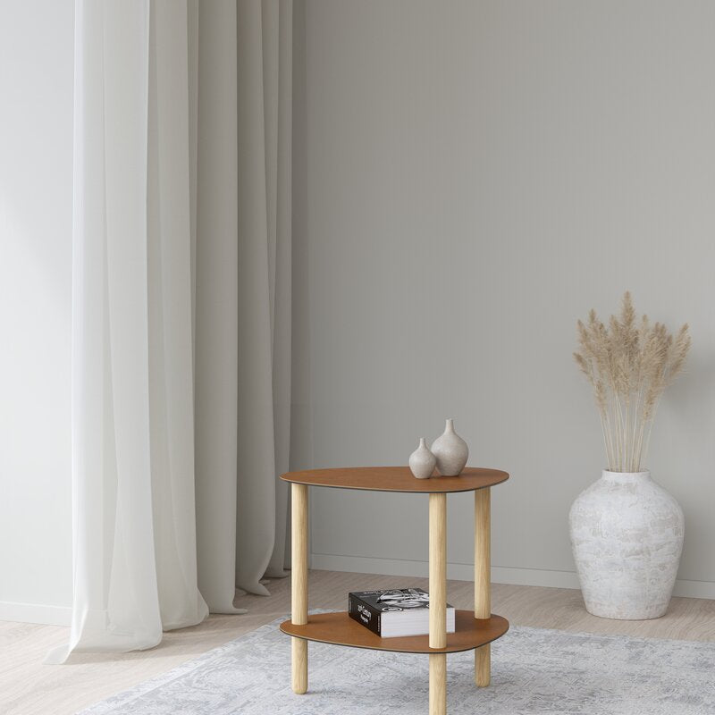 Vielseitig verwendbarer Beistelltisch zum Abstellen im Wohnzimmer oder als Nachttisch. CURVE LOUNGE TABLE mit 2 Ablagen ist durch seine außergewöhnliche Form und seine hochwertige Verarbeitung ein Schmuckstück in jedem Wohnbereich. Die Inspiration dieses Möbelstücks kam durch die ausschließliche Verwendung von Naturmaterialien, die Formgebung des CURVE Designs und dem Wunsch der Designer von LindDNA, Praktikabilität mit Ästhetik und Mobilität zu verbinden. Deshalb ist CURVE LOUNGE TABLE ein Designstück mit vielen Funktionen - ob als Nachttisch, als Wohnzimmertisch oder einfach für Dekozwecke oder zur Aufbewahrung von Utensilien. Egal wie CURVE LOUNGE TABLE genutzt wird, er wird offene Räume oder kleine Nischen in deinem Zuhause dekorativ ergänzen.