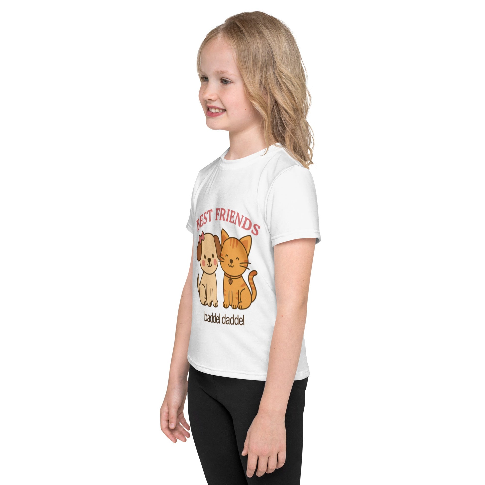 Best Friends T-Shirt mit Hund-und-Katze-Motiv – Im weißen Baddeldaddel Design!