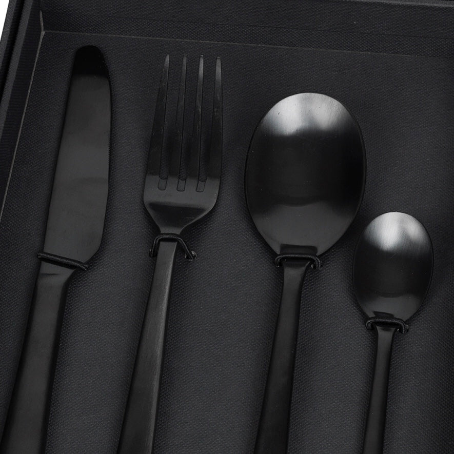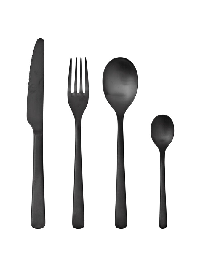 Ein besonderes Besteck für besondere Anlässe oder auch für täglich. Moderne, schlichte Form, die durch die besondere Farblegierung unterstrichen wird. Aus hochwertigem Edelstahl mit einer Farblegierung in matt schwarz. Als 4teiliges Set (Messer, Gabel, Esslöffel, Teelöffel) oder Teelöffel einzeln.