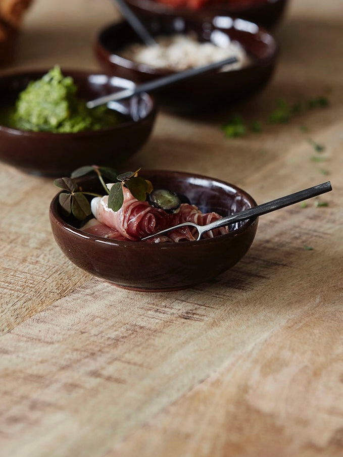 - Maße Länge: Löffel 10 und 12cm, Salzlöffel 8cm, Gabel 10cm