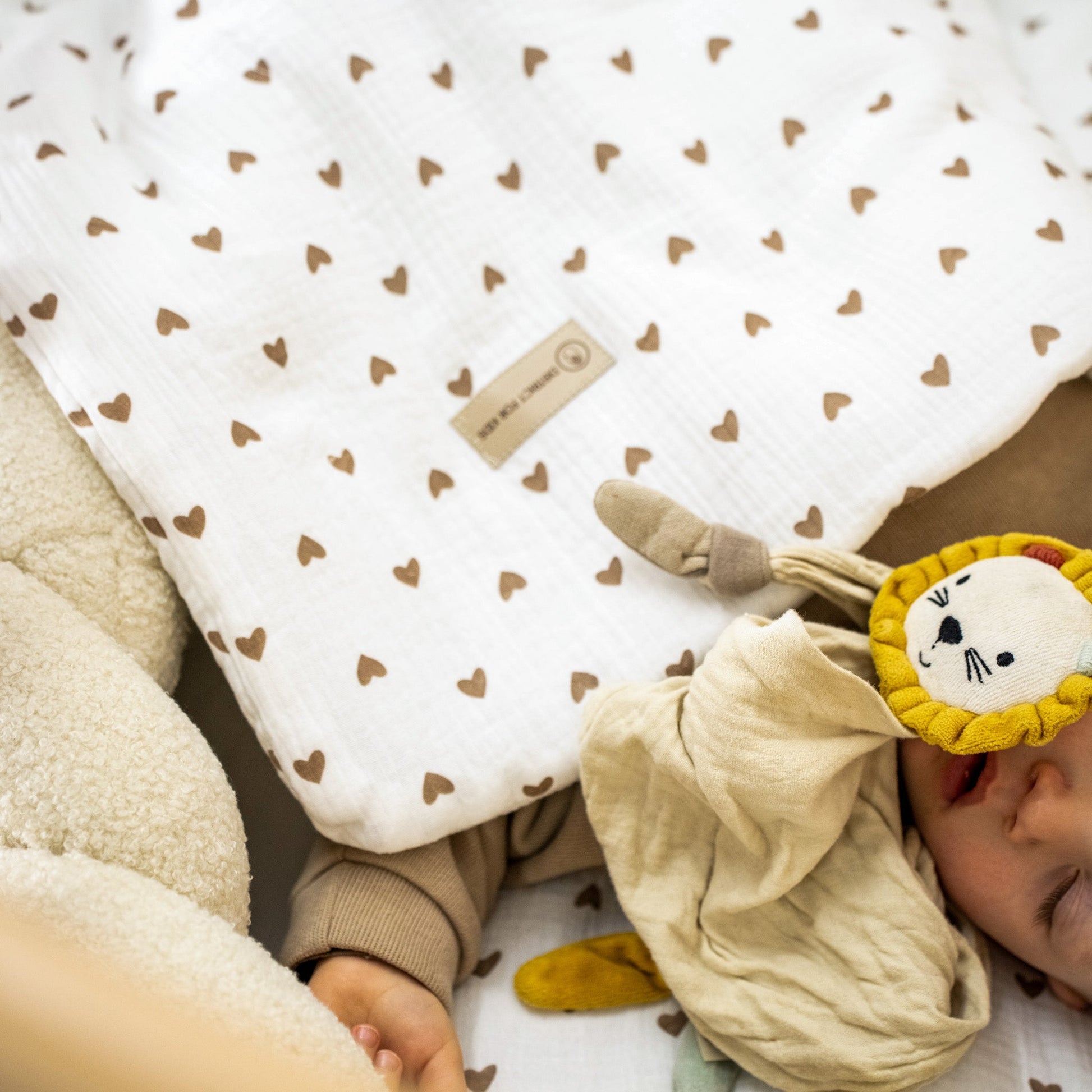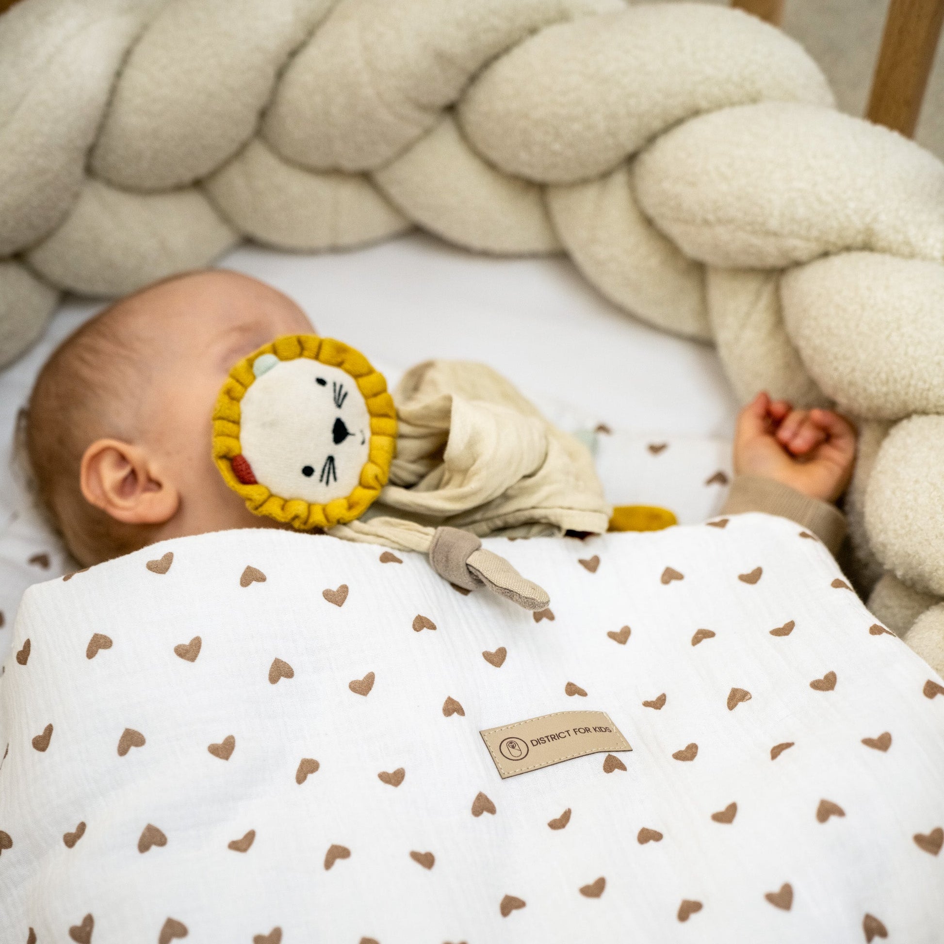Der atmungsaktive Musselin-Stoff ist angenehm leicht und gleichzeitig kuschelig weich – ideal für empfindliche Babyhaut. Durch seine natürliche Struktur ist Musselin besonders anschmiegsam und sorgt für ein gemütliches Schlaferlebnis.