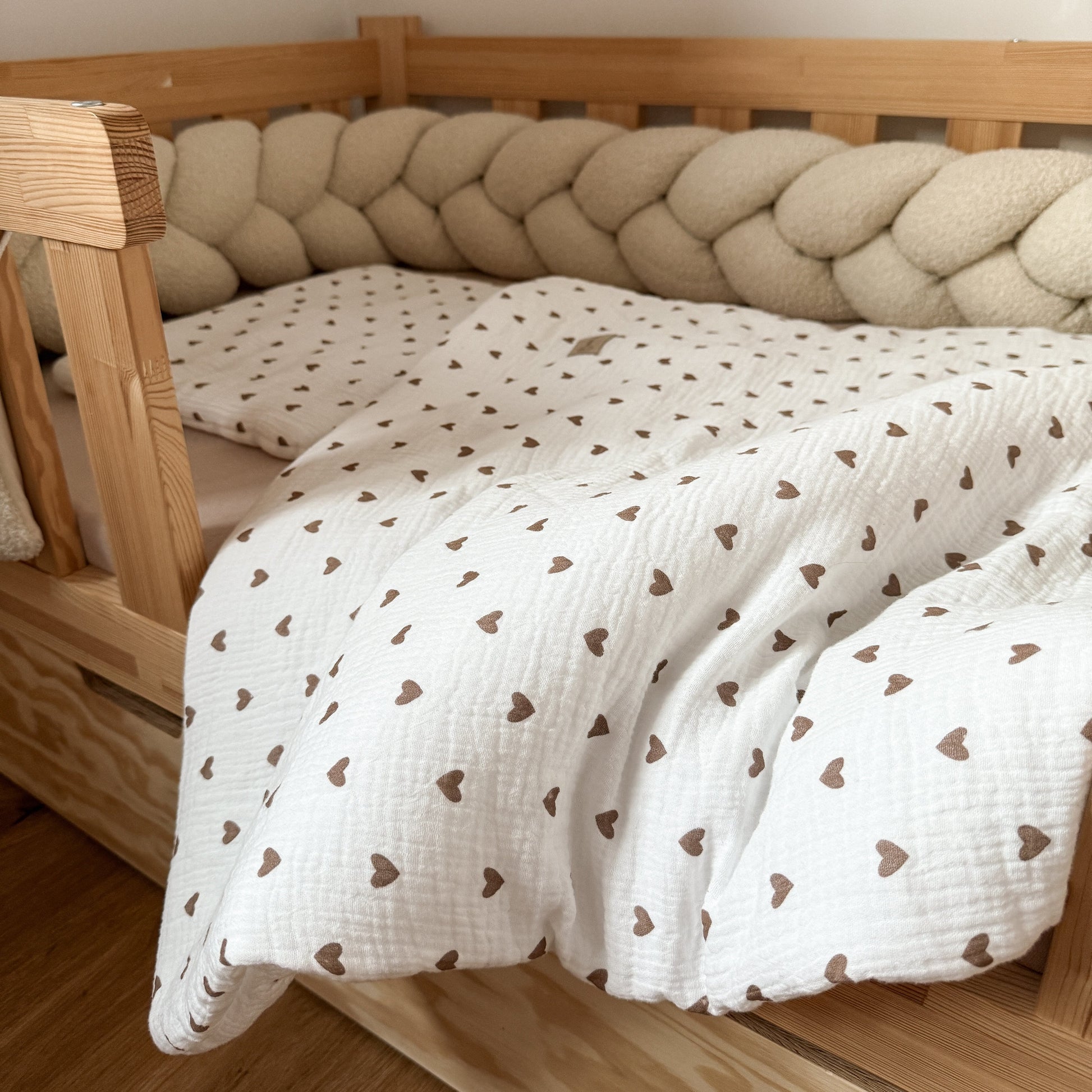 Bettwäsche gebrauchsfertig Musselin Herzen braun – Weich & Atmungsaktiv
