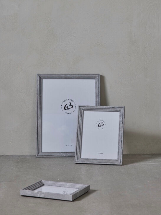 Zeitlos schöner Bilderrahmen von Lene Bjerre aus gekalktem Holz mit Reliefstreifen. Jeder Rahmen ist handgefertigt, um das besondere graue Finish zu erhalten. In 3 Größen erhältlich.