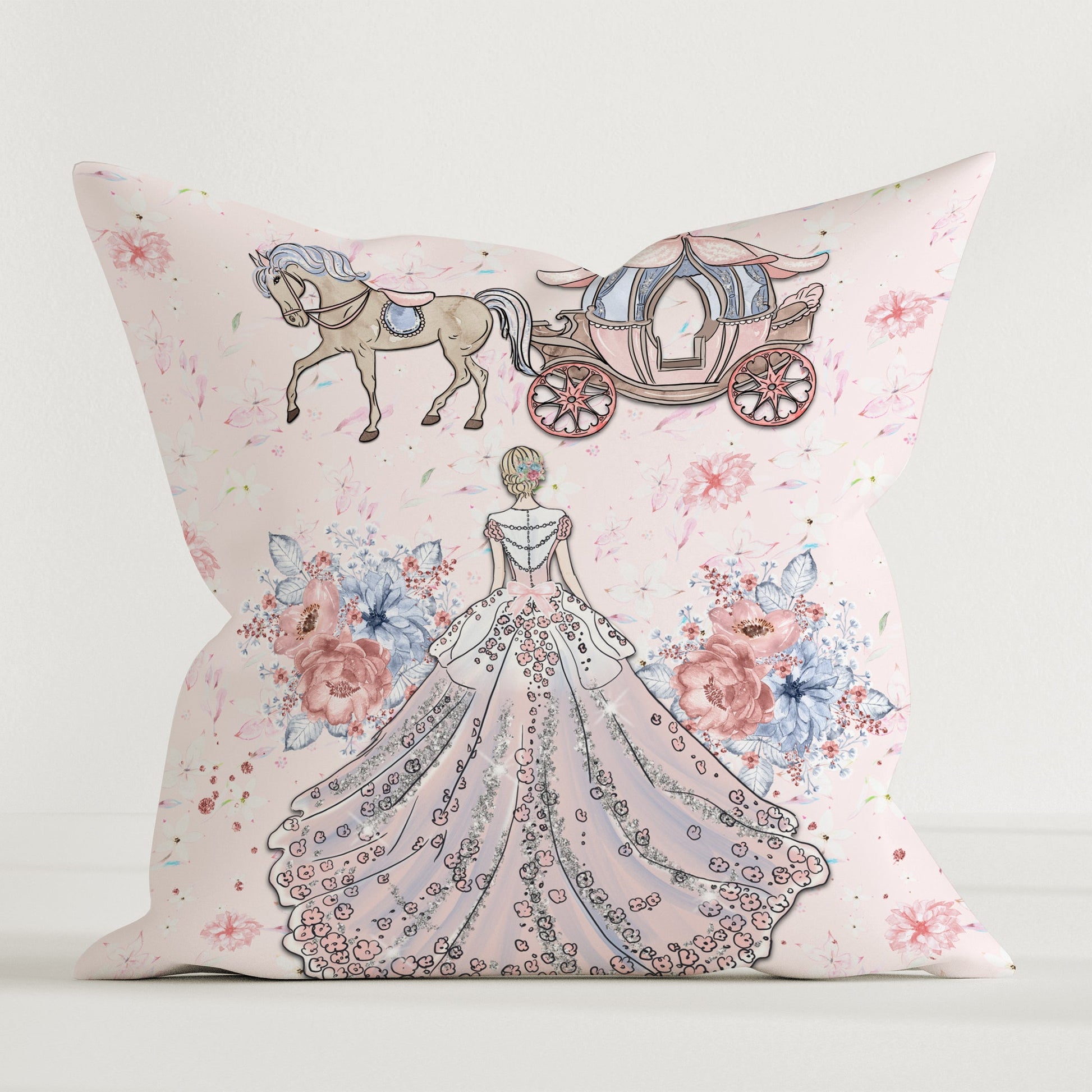 Königlicher Blumentraum: Verträumt schreitet die Blumenprinzessin in ihrem üppigen rosa Kleid auf ihre märchenhafte Kutsche zu, begleitet von einem eleganten Pferd. Eingerahmt von einem Meer aus Blumen, vermittelt sie das Gefühl eines beginnenden Abenteuers in einem königlichen Reich.