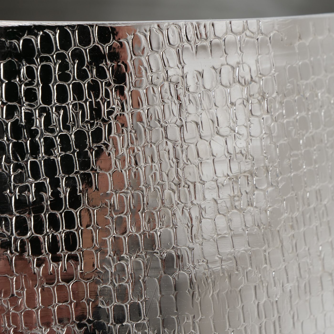 Edle Pflanztöpfe aus Aluminium (robuste Qualität), die Oberfläche ist mit vielen kleinen Schlangen-Mustern verziert.