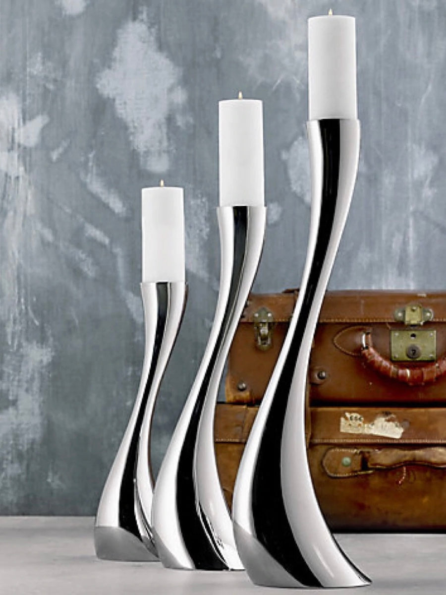 Die wunderschönen Spiralen von Cobra erhalten eine neue Dimension als spektakuläre Boden-Kerzenleuchter. Was als eine Vision auf einem Tisch angefangen hat, hat sich dank der drei Kerzenleuchter für den Boden zu einer wachsenden Familie entwickelt. Cobra windet sich empor und sticht sofort ins Auge. Er zieht die Aufmerksamkeit auf sich mit seinem Sinn für Bewegung, einem Impuls, der eine dynamische Anwesenheit schafft, wo immer er sich befindet.