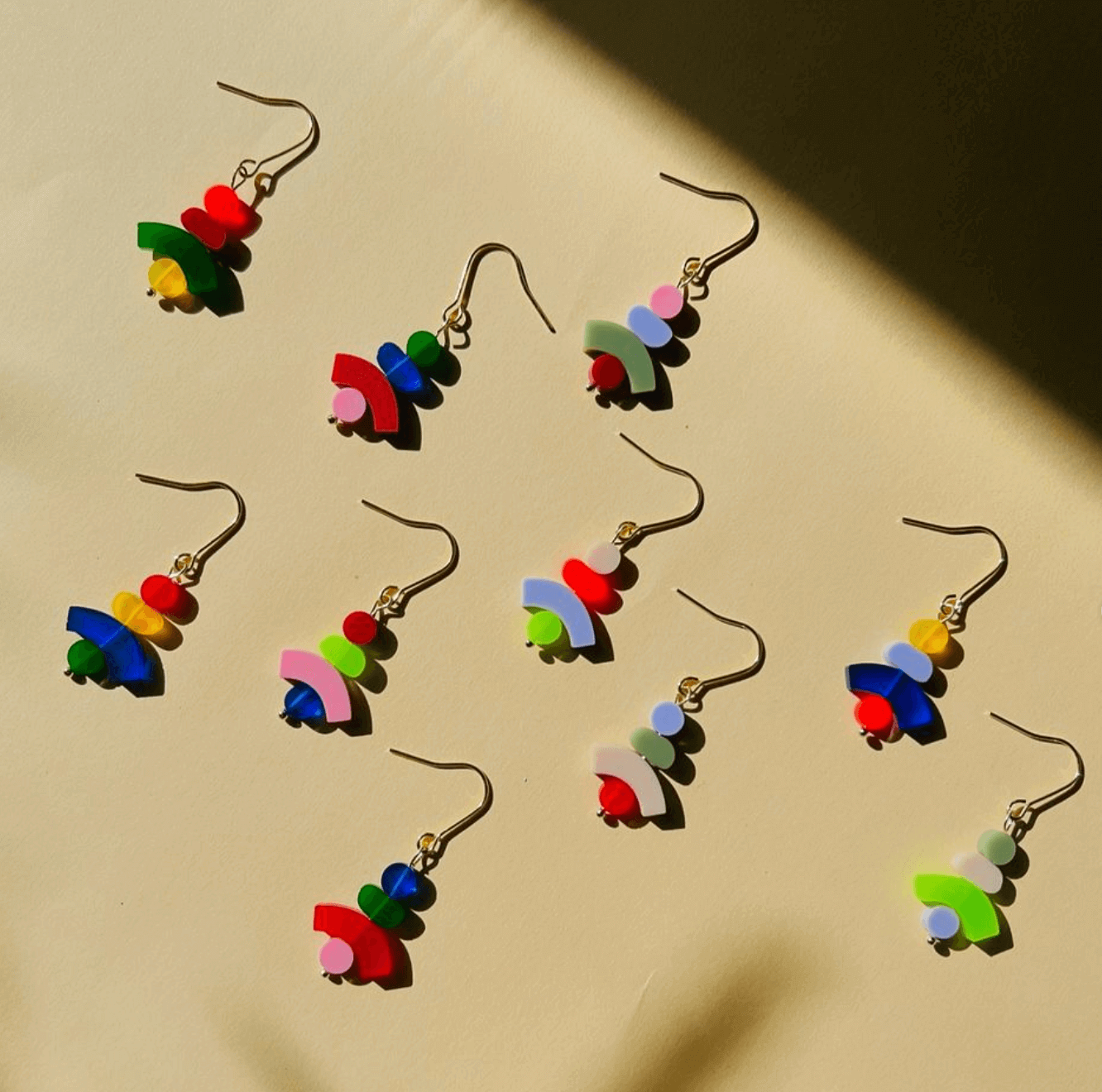 Unsere fröhlichen Schmuckstücke sind aus Restbeständen unserer recycleten Acrylplatten hergestellt und tragen damit einen großen Beitrag zu Nachhaltigkeit und Less Waste.