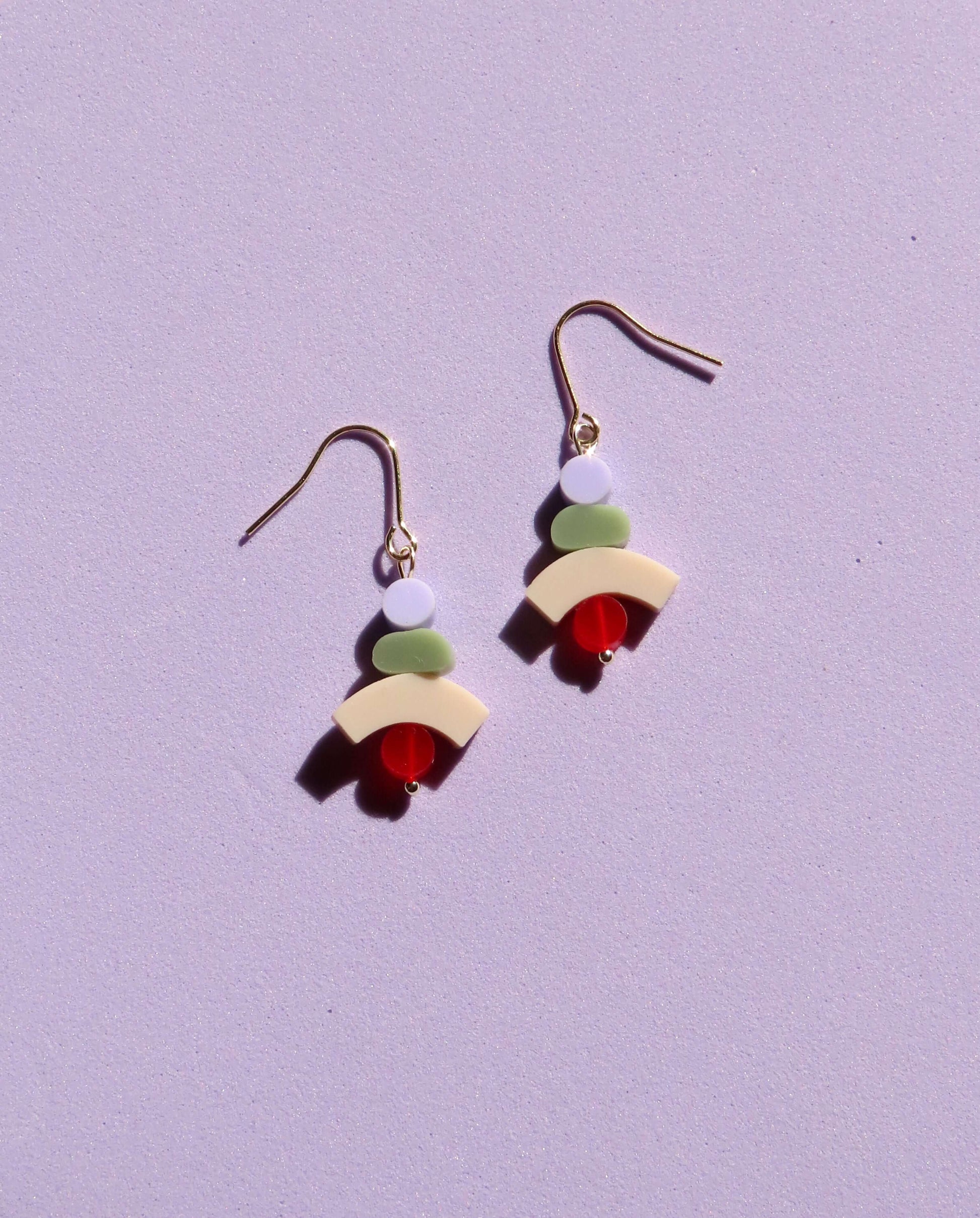 Unsere Cairns Ohrringe sind ein farbenfrohes Statement und von der Natur inspiriert, denn Cairns nennt man auch die kleinen Steinhaufen, welche man oft am Wegesrand findet.